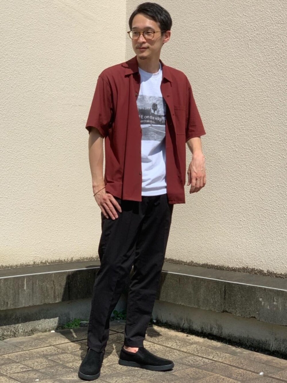 【身長】171cm【size】シャツ S・パンツ、カットソー M ワインレッド×ブラックでロックな雰囲気にしました。