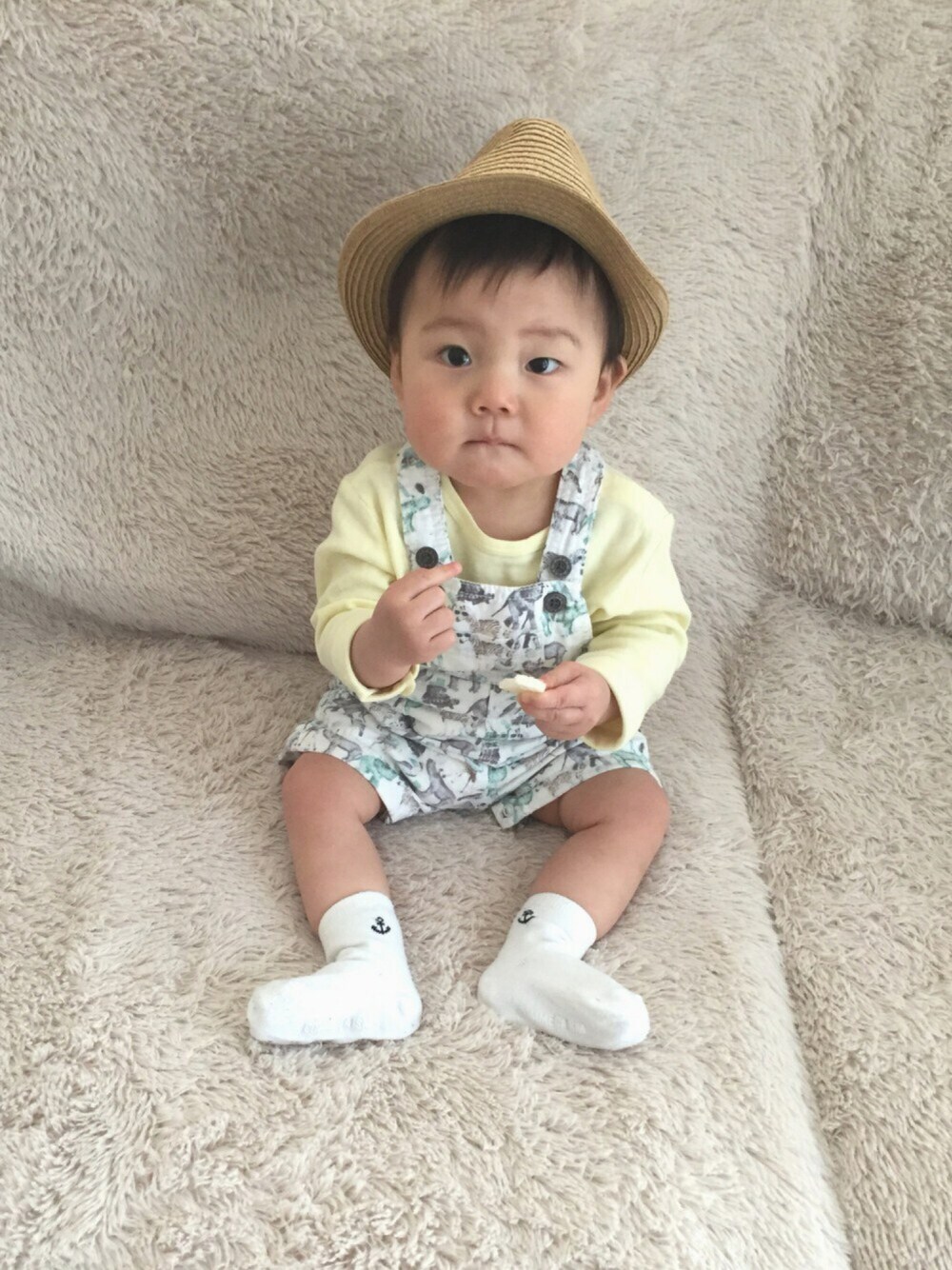 去年の夏着ていたサロペット♡ 何とか今年も着れました((´∀`))ピッタリ‼︎ でも体調万全じゃないので写真撮ってすぐに着替えました。 いいお天気なのにお外で遊べないのがほんと残念(ノ_・。) 大好きなお菓子を大興奮で頬張る息子♡ りんごジュースは一気飲み(;OдO)w 早く元気になっておくれ〜☆