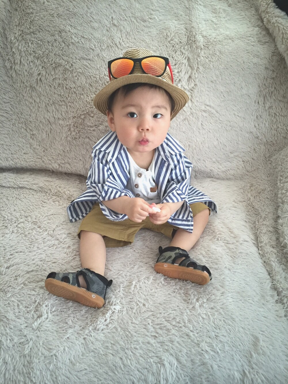 今日はとぼけた表情です(≧m≦) スニーカー、サングラスデビューの次はサンダルデビュー♡ 色々可愛いデザインの物があったけど夏はヨチヨチ歩きだろうから指を守ってくれそうなものに☆ でも気になるみたいで脱ぎたがる(ノω・、) 今日もドラフト参加させてください♡