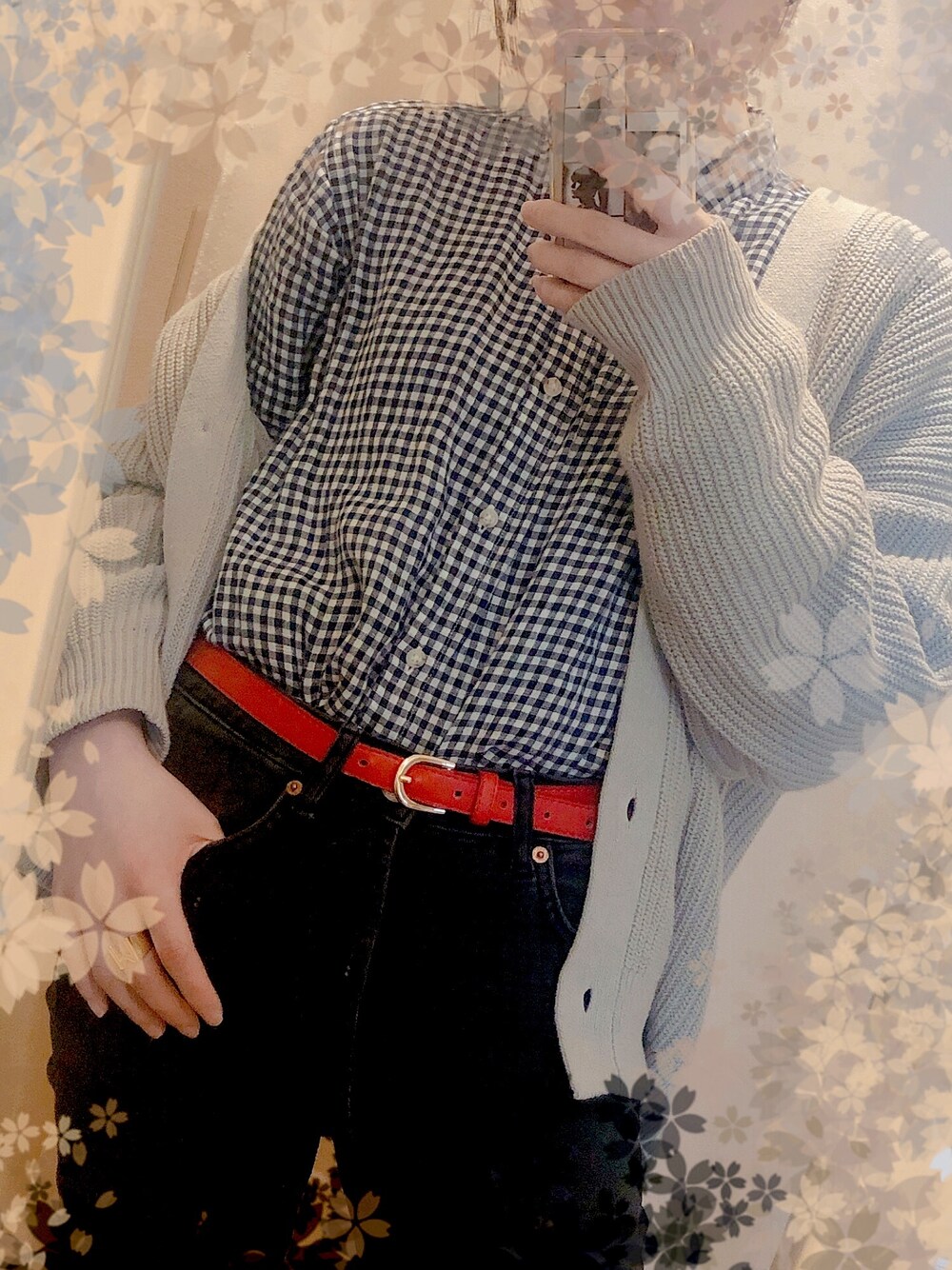 お久しぶりです。 コロナで大学が遠隔授業になってしまい、この春学校に着ていく予定だったものを着ていけなくなったので家で着ることにしました。 最近はモノクロのアイテムを基調とし、ワンポイントに赤などを入れるのにハマっています。 カーディガンは最近新調したものですが、ゆるいシルエットが可愛すぎました。