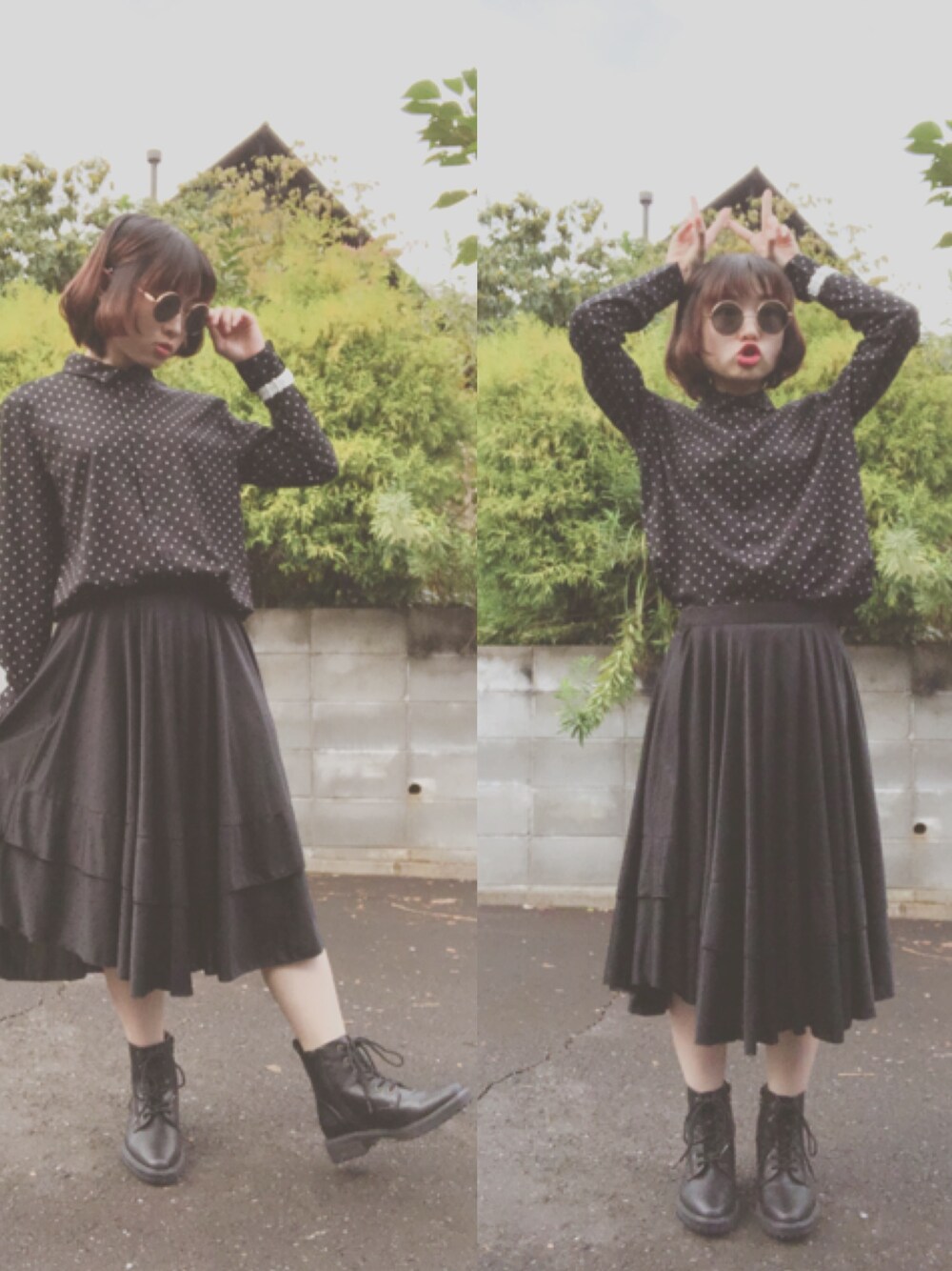 全身黒マンand全身水玉マン(実はスカートも水玉) おニューのシャツとブーツが私史上最高にレトロアイテムでお気に入り