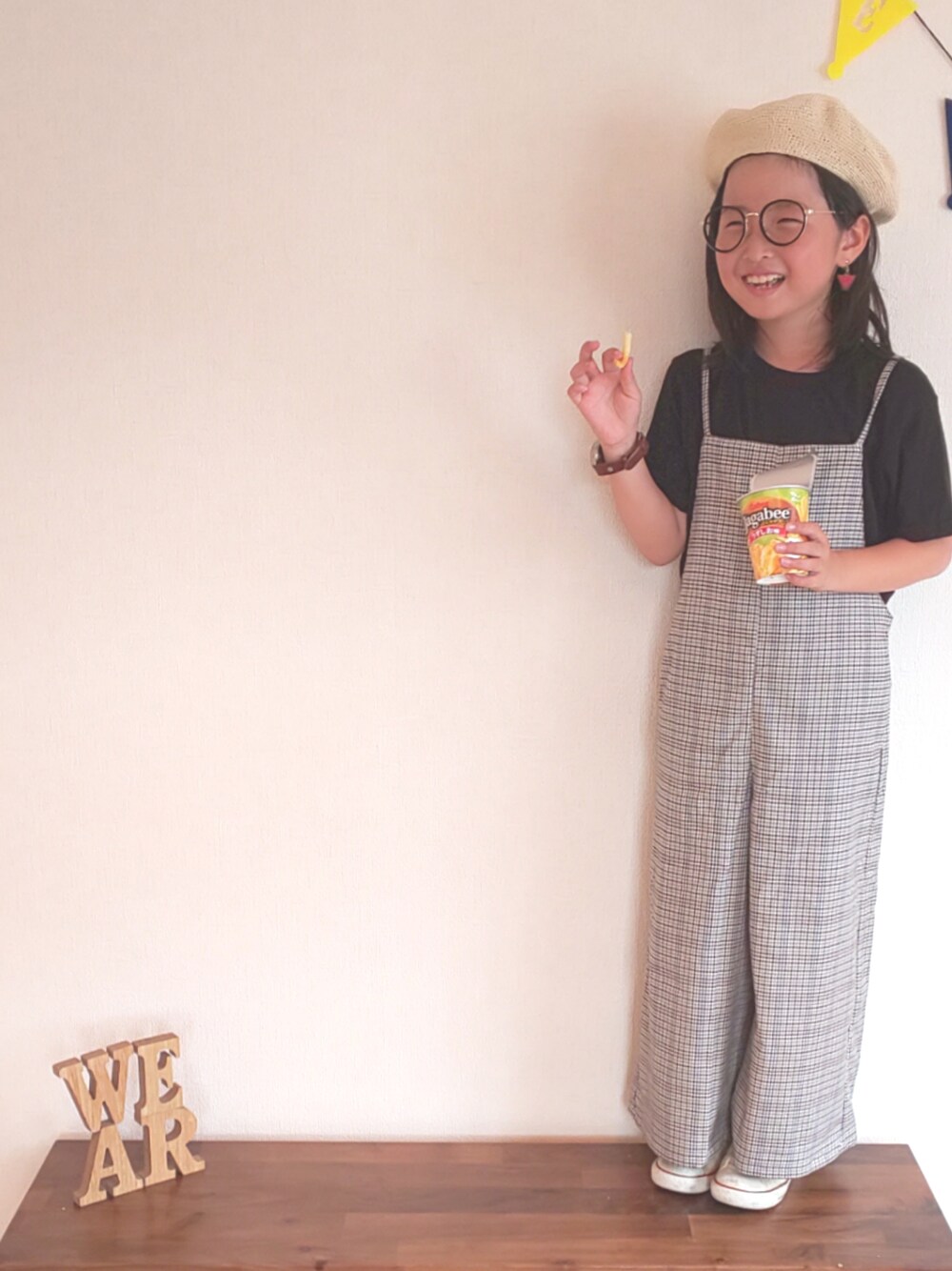 ひまひなふわのハンチング/ベレー帽「【ママとお揃い】キッズミックス編みベレー帽」を使ったコーディネート