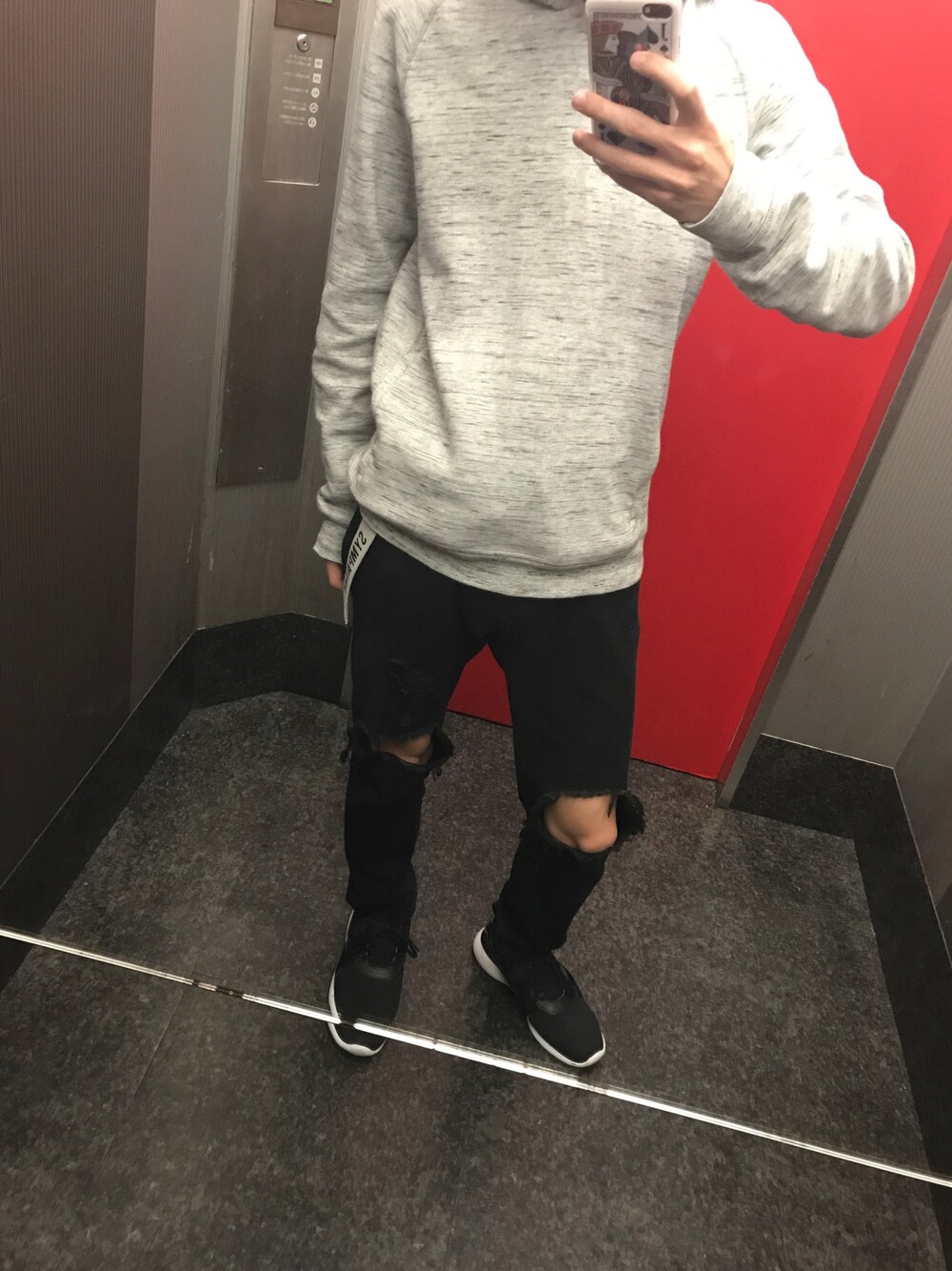 久々の投稿‼︎! シンプルに黒のダメージにグレーのパーカーで! 靴はシンプル目のスニーカにして 大人可愛いになったかな??