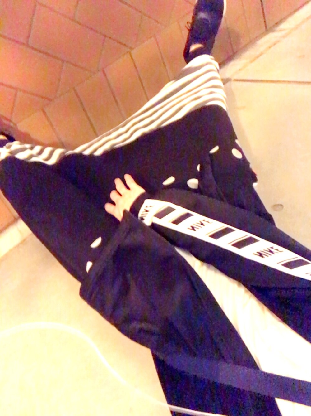 今回もゆるく着こなし! サルエルパンツに白シャツ、その上から ナイキのジャージでゆるーく着こなしました! 今日は昼間も暑かったので 羽織にしても可愛かったです! よかったら見てやってください!