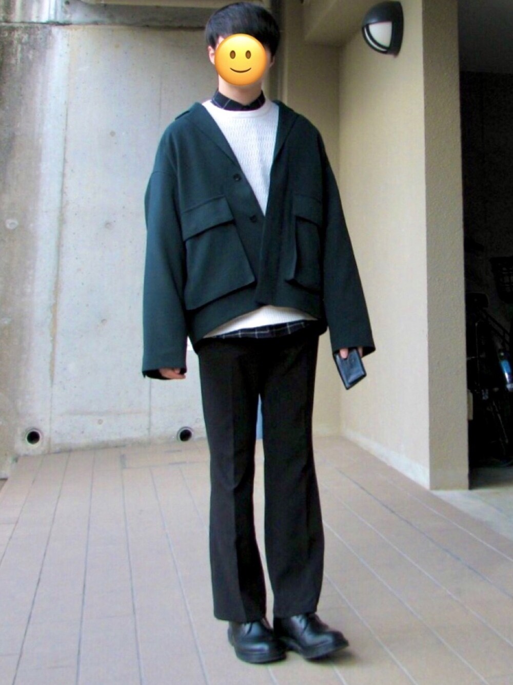 HAREのジャケゾン!! 濃いめのグリーン+サラッとした生地感が素晴らしい。 リユースで3700円で購入しました。 ジャケゾン:リユースで3700円 フレアパンツ:リユースで3000円 ニット:セールで2500円 ドレスシューズ:ZOZOUSEDで2240円