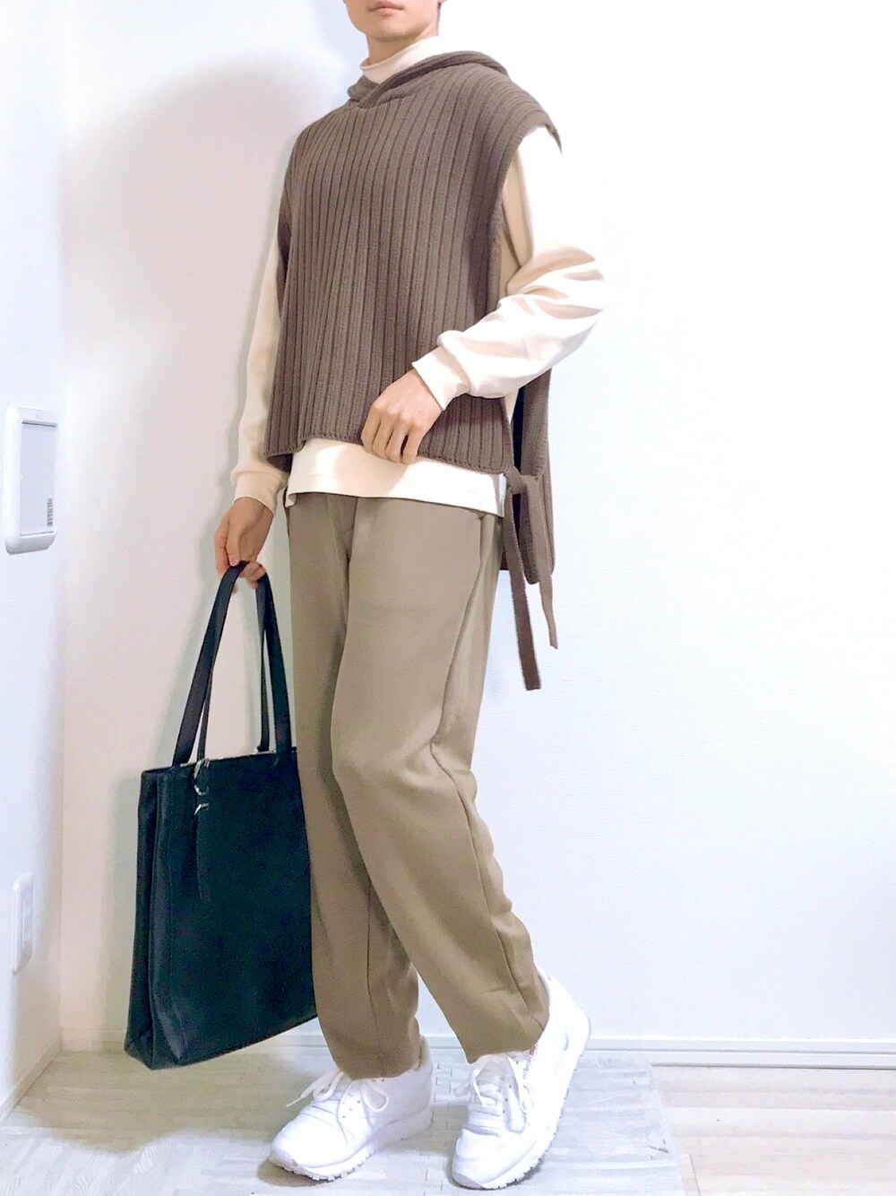 HAREのフード付きニットベスト! この時期はニットベストが流行りますが、 このベストなら差別化も簡単です👍 ベスト:リユースで2000円 スニーカー:ZOZOのセールで3500円