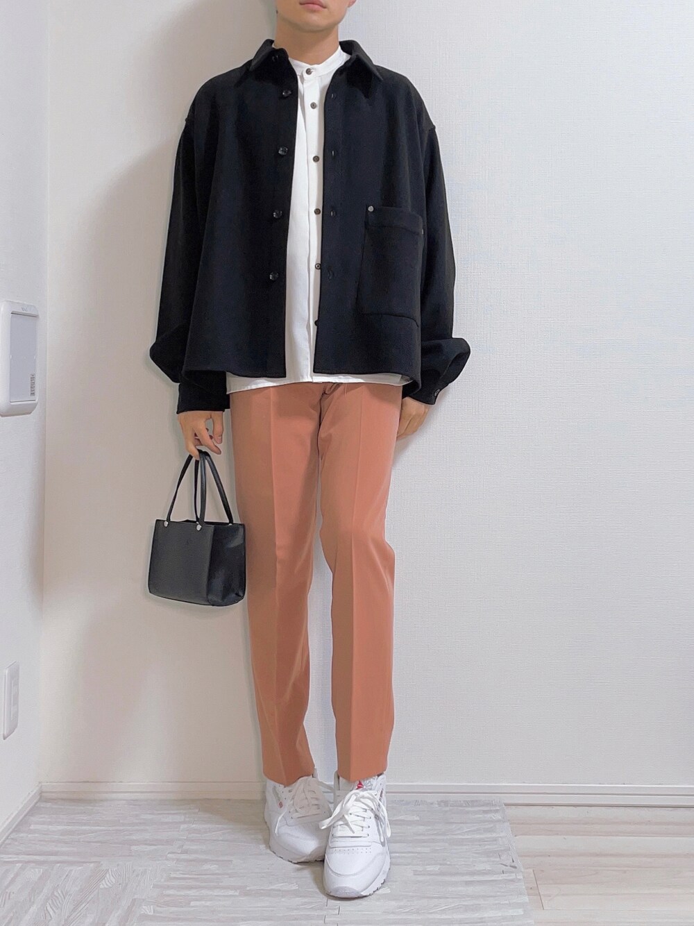 HAREのウーリーテックシャツ! こちらのシャツはウール素材なので、 これからのアウターとして着用できます🙆♂️ 今年の黒アウターはこれで間違いないです👍 アウター:リユースで7000円 シャツ:ZOZOのセールにて2000円 スラックス:店舗のセールにて2500円 スニーカー:ZOZOのセールにて3500円