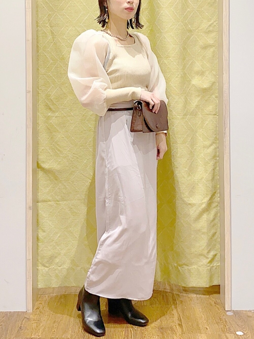 Rihoのニット/セーター「オーガンジースリーブニットプルオーバー *」を使ったコーディネート