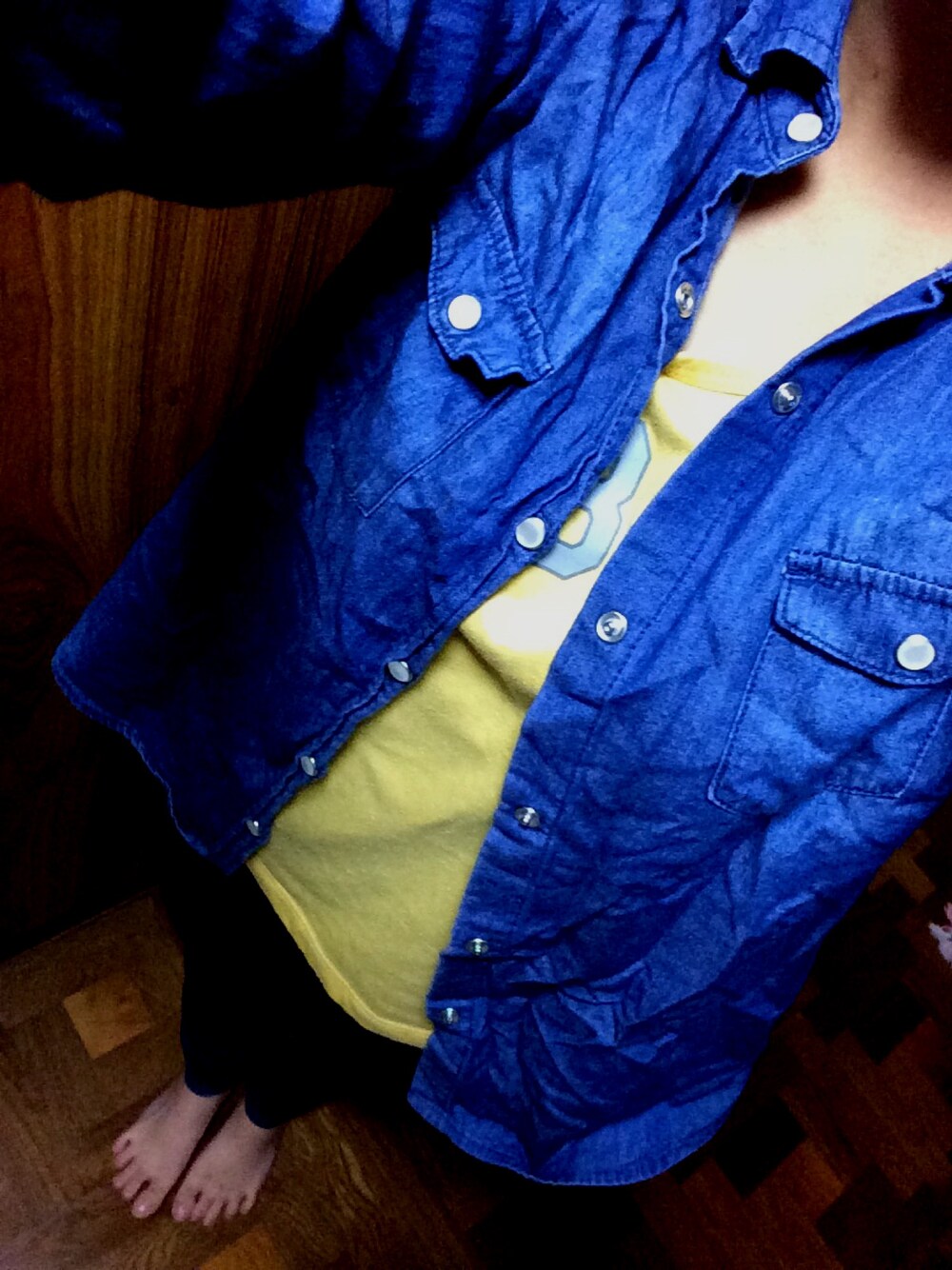 おはようございます☀️ 今日は一段と寒いです。 ティーシャツの上にデニムシャツを羽織ったのですが…アイロンがけ忘れてた💦 シャツさんごめんね💕
