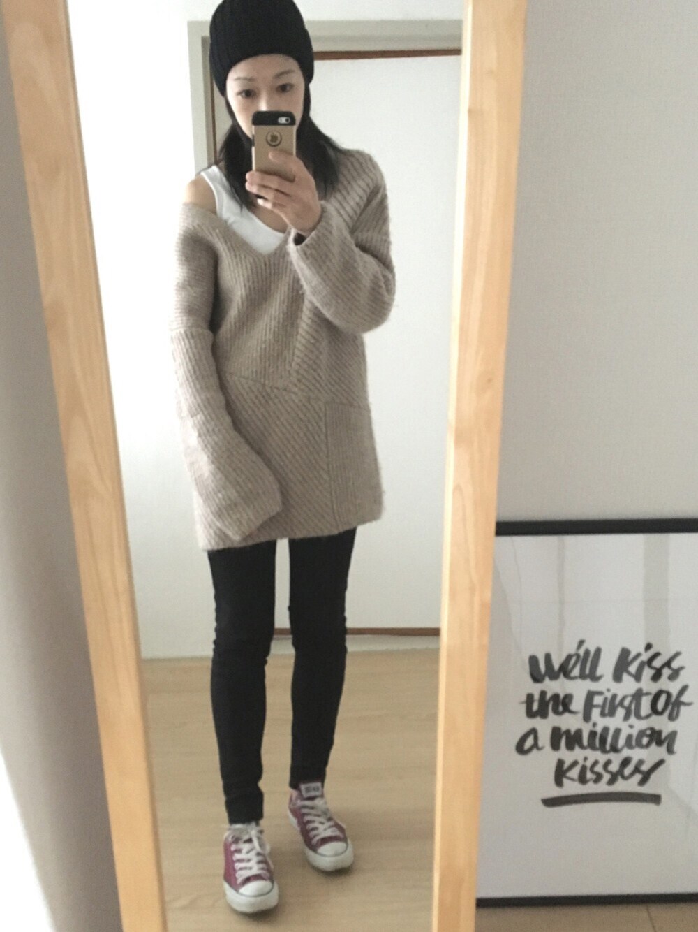 冬の肌見せ🐻👣 ボルドーのコンバースは使える👣❤️