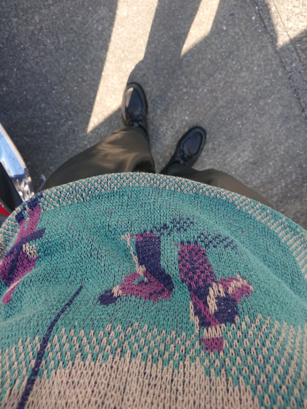 可愛いニットをフェイクレザーパンツとドレスシューズで引き締めてみた