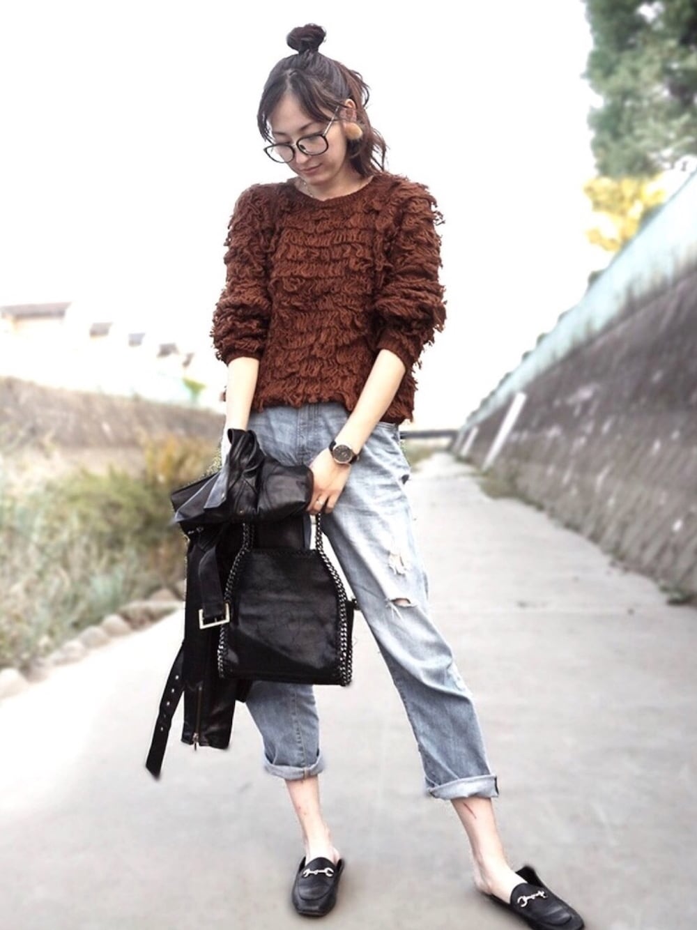 Tiffee のニット/セーター「もこもこループヤーンニットプルオーバー」を使ったコーディネート