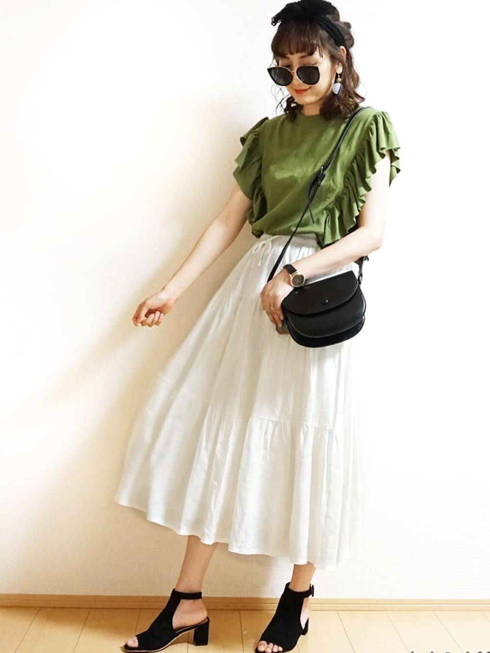 Tiffee のスカート「裏地付きティアードロングフレアスカート」を使ったコーディネート