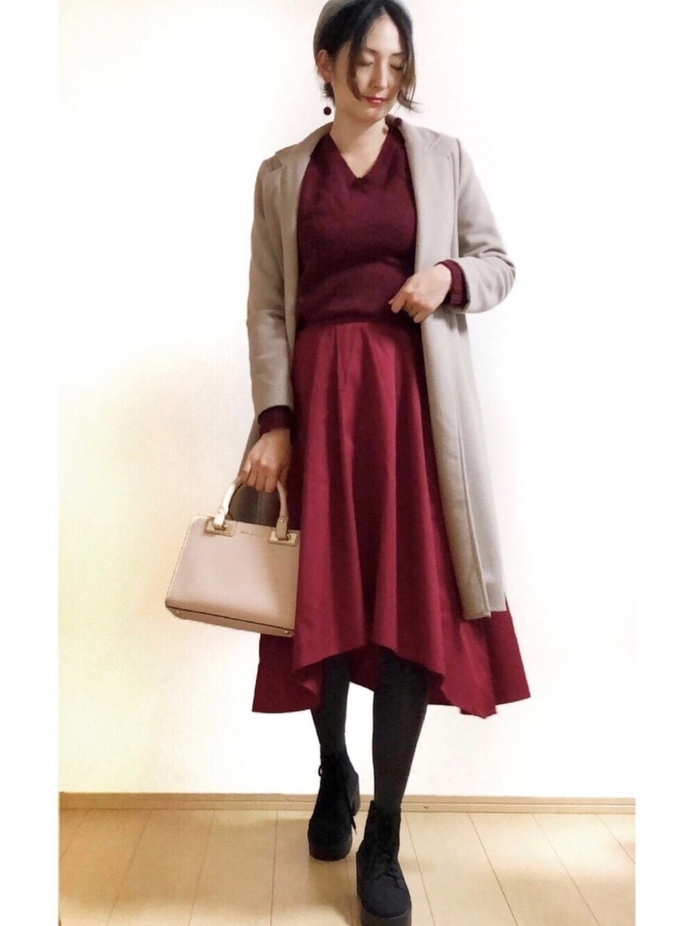 プチプラコーデ♡ レディースライクなスタイルが着たくて(´ω`) タイツとベレー帽はグレーです。 分かりづらいですが(^^;)