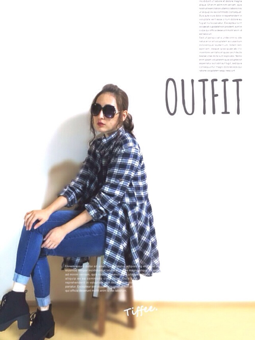 Tiffee のシャツワンピース「ウエスト絞り長袖チェックシャツワンピ」を使ったコーディネート