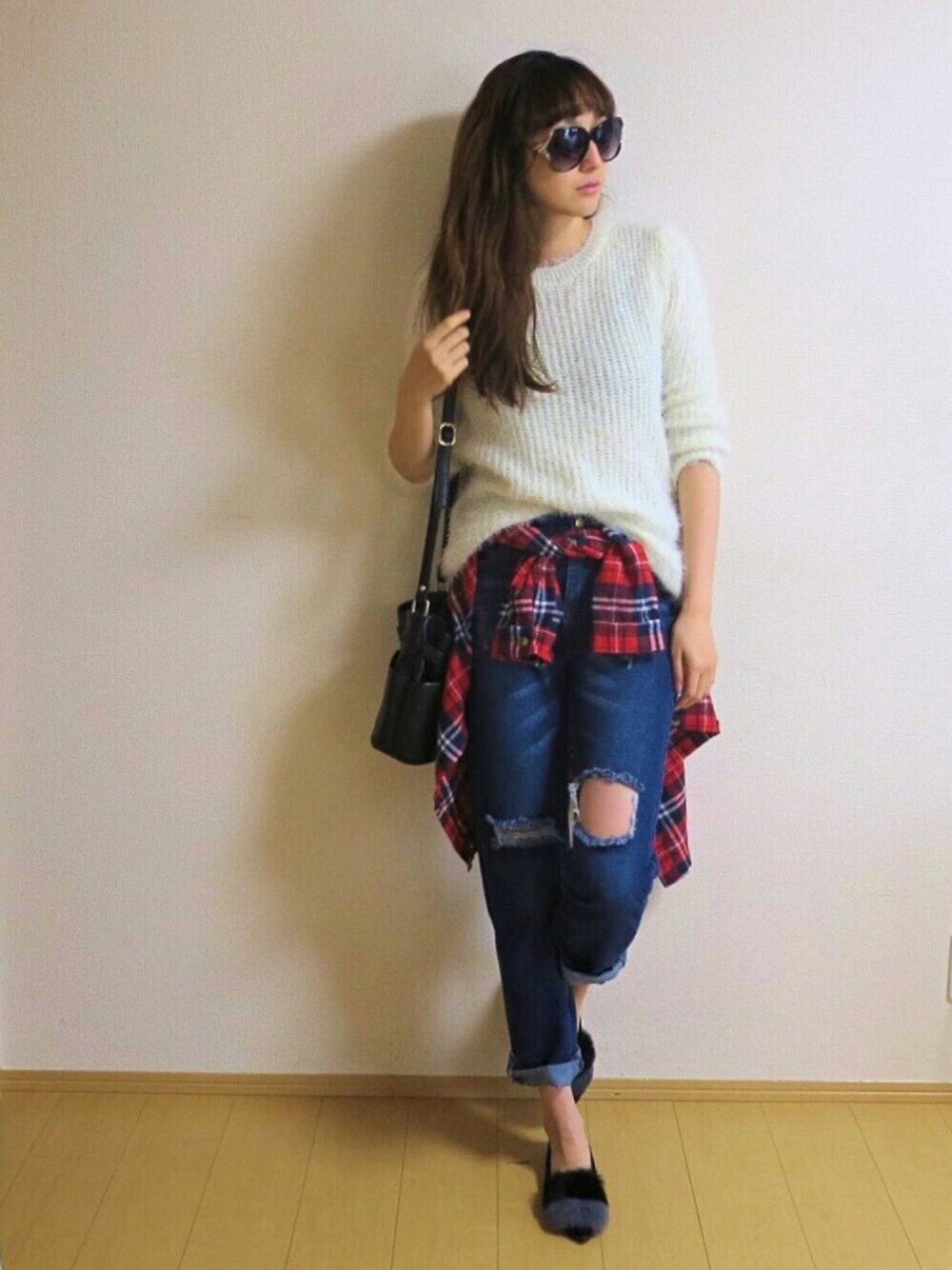 シンプル定番コーデ(^^) シャギーニットと ワイドデニム チェックシャツを腰巻きに♡ __________________________ 義母と義叔父の手作りみそ 1年ものと、数年の熟成もの 合わせて作る味噌汁が絶品です(*・ω・)ノ お味噌汁の美味しい季節になってきた♡