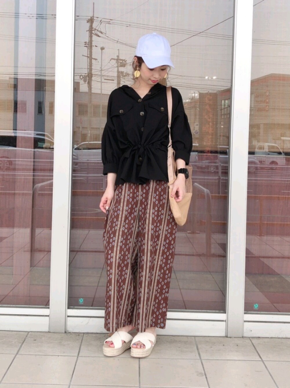 ゆるっとカジュアル😋🌼 柄ワイドパンツが主役のコーデ❣️