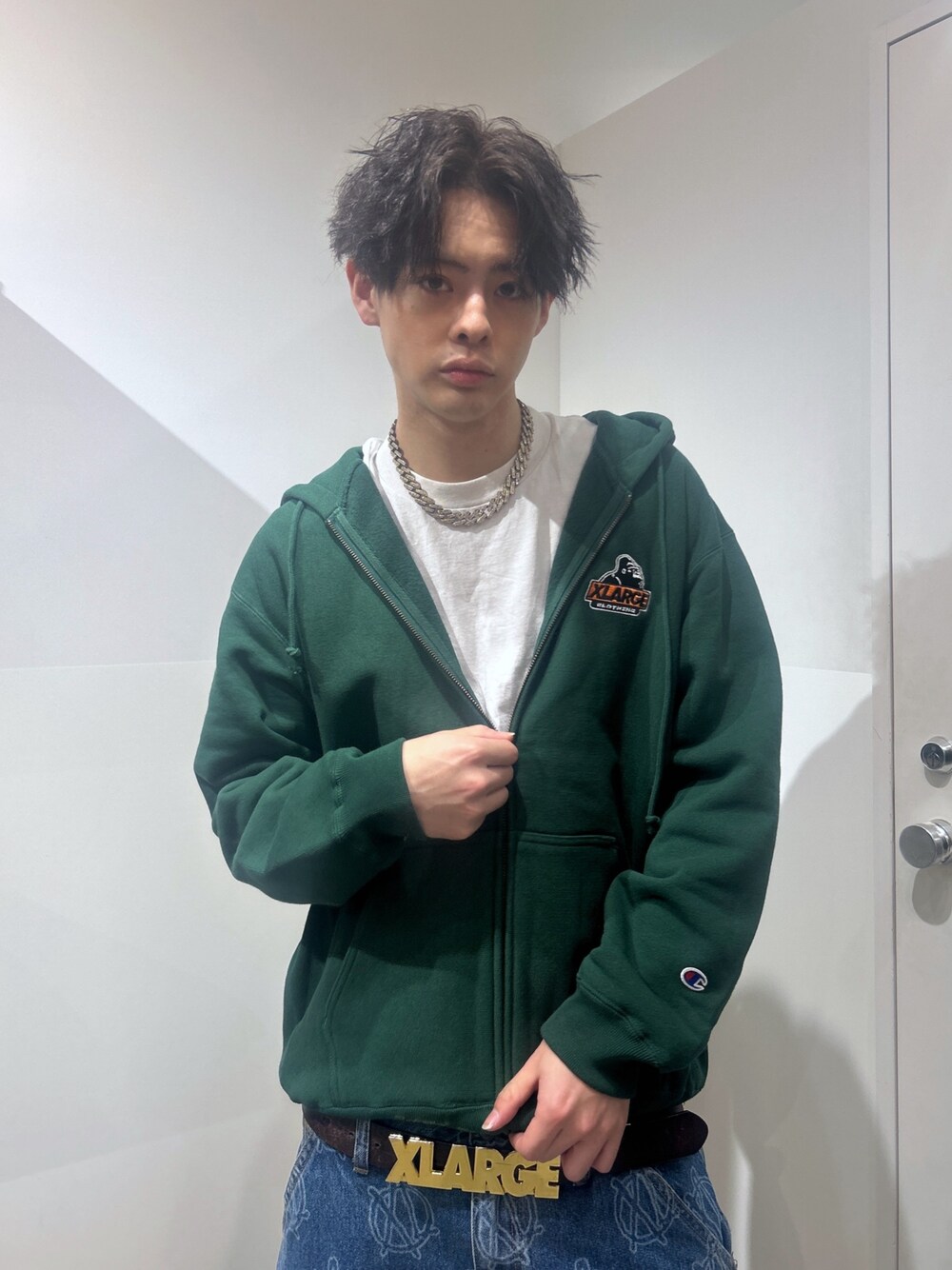 TIGER(XLARGE原宿)のパーカー「XLARGE×Champion REVERSE WEAVE FULL-ZIP HOODED SWEAT」を使ったコーディネート