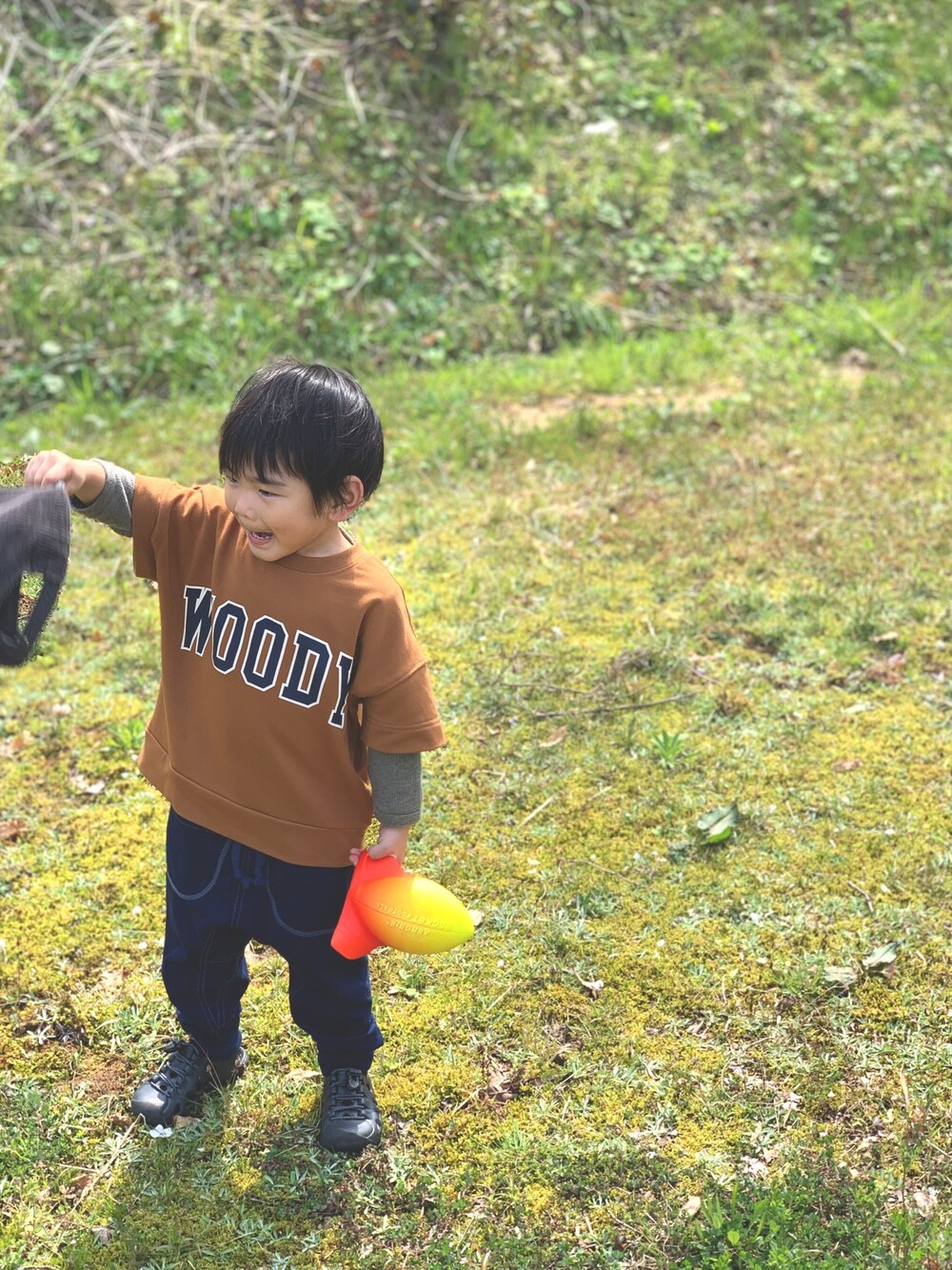 𓆌𓆌𓆌 幼稚園コーデ予行練習 7分丈パンツをオーバーサイズで履かせたら好きなシルエットになった笑