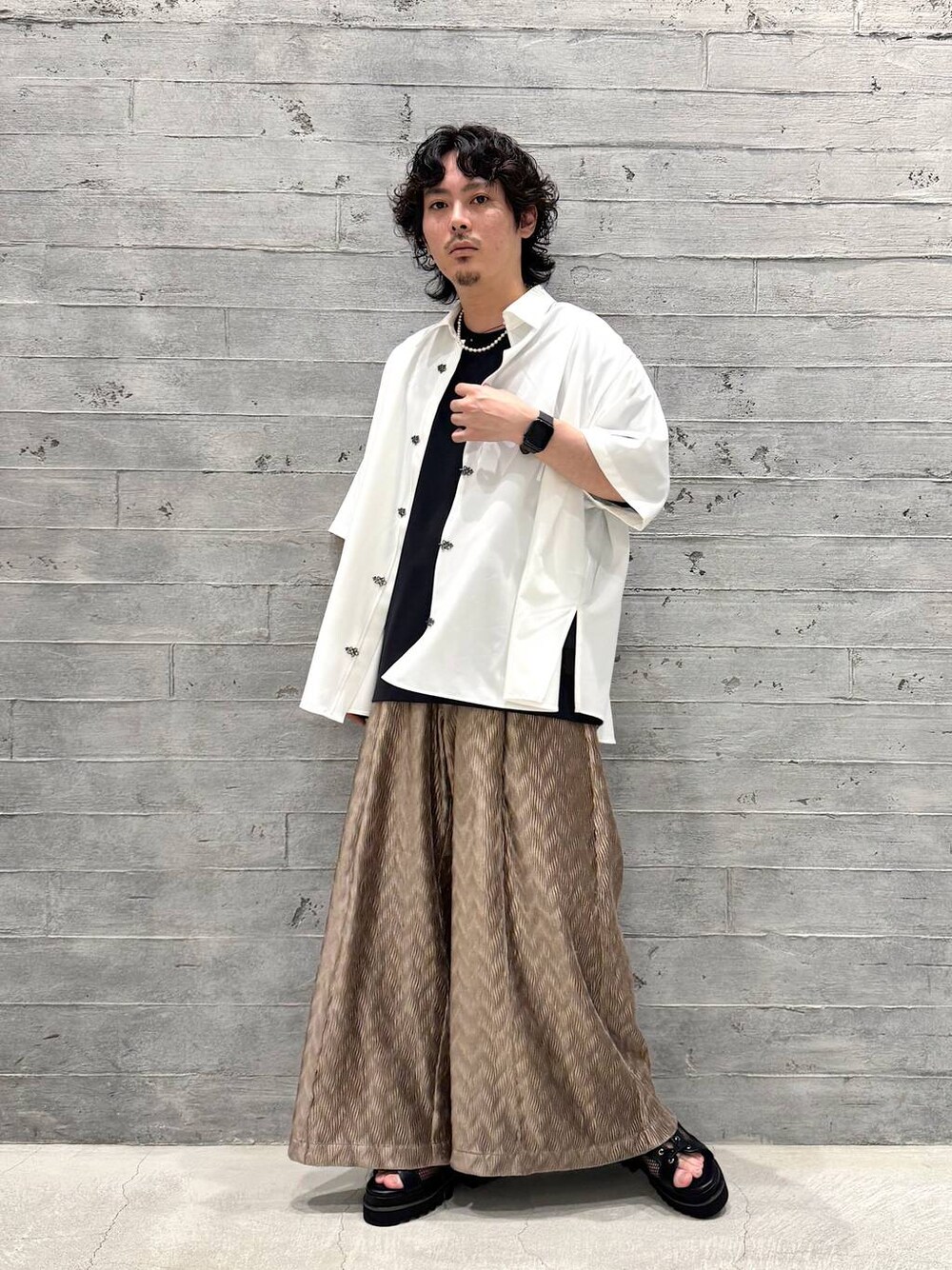 ヴィンテージライクなメタルボタンが特徴的なシャツに提灯柄のイージーパンツを合わせたモードなスタイリングです^ ^! ●トップス ヴィンテージ感あるメタルボタンが特徴的なオーバーサイズのシャツです!! 羽織るだけでオシャレ感が出て無地なので普段着としてもお出かけ用としても着回し出来ます!! 羽織るのが暑くて苦手な方はノースリーブで涼しくしてもらうと⚪︎また脇汗もオーバーサイズならではであまり気にならのも最高です!! ●ボトムス 提灯をモチーフとした柄になっており、ウエストの紐がレザーなのでタックインスタイルもおすすめです!! 提灯が『和』をイメージさせてくれるので袴のようなシルエットでお作りしてます!! 身長→171cm 標準体型/脚太め シューズ→Mサイズ着用(25.5) 右下ハートマークを押すと後でチェックしやすくなります!! 最後まで読んでいただきありがとうございました!!