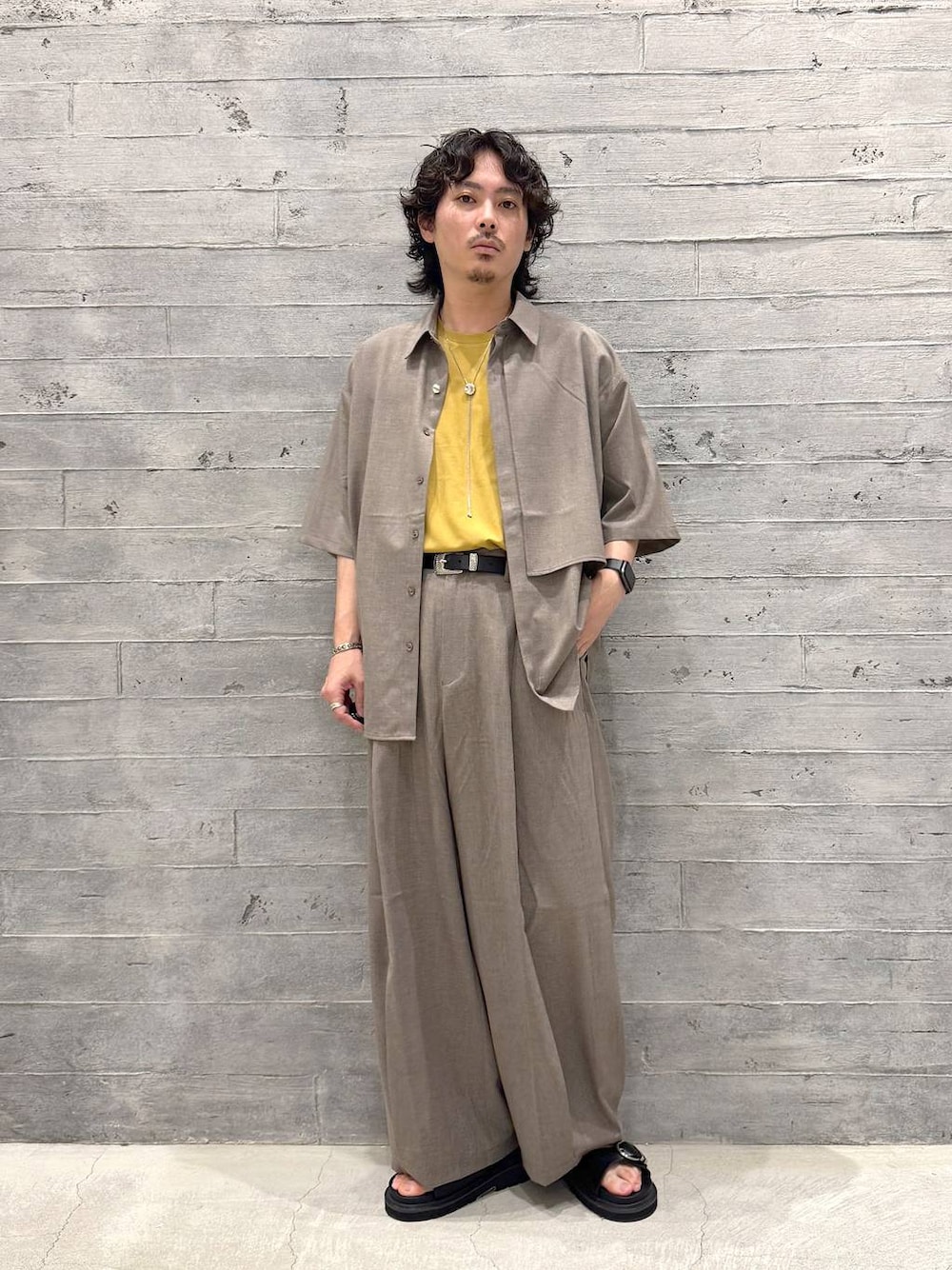 メランジのセットアップスタイリングです^ ^! ・メランジは「シンプルかつこなれ感」が出せる素材感なのでオシャレ始めたての方でも上級者の方でも取り入れられる万能素材です!! またシワがつきにくくお洗濯などもしていただきやすいです! ●トップス 左身頃のフラシデザイン、第二ボタンのパールボタンが特徴的でワンポイントのアクセントになります!! 羽織りスタイルでも一枚着でもどちらでも様になるので着回し力抜群のシャツです!! ●ボトムス センターのタックが裾まであり、サイドにもタックが入っておりスラックスのように履けます! 生地がすごく柔らかく夏履き心地抜群です!! 身長→171cm 標準体型/脚太め シューズ→Mサイズ着用(25.5) 右下ハートマークを押すと後でチェックしやすくなります!! 最後まで読んでいただきありがとうございました!!