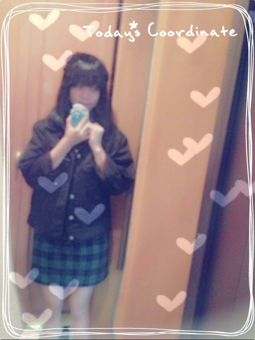 今日のコーデです💓 緑のチェックのタイトスカートお気に入りです★ 背が小さい私でも着れます!!