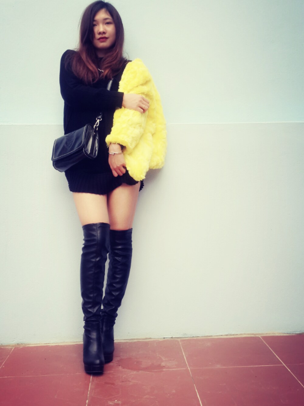 A sweater dress plus long boots will help improve your high 😉 follow me on instagram for more outfits @tikkablack