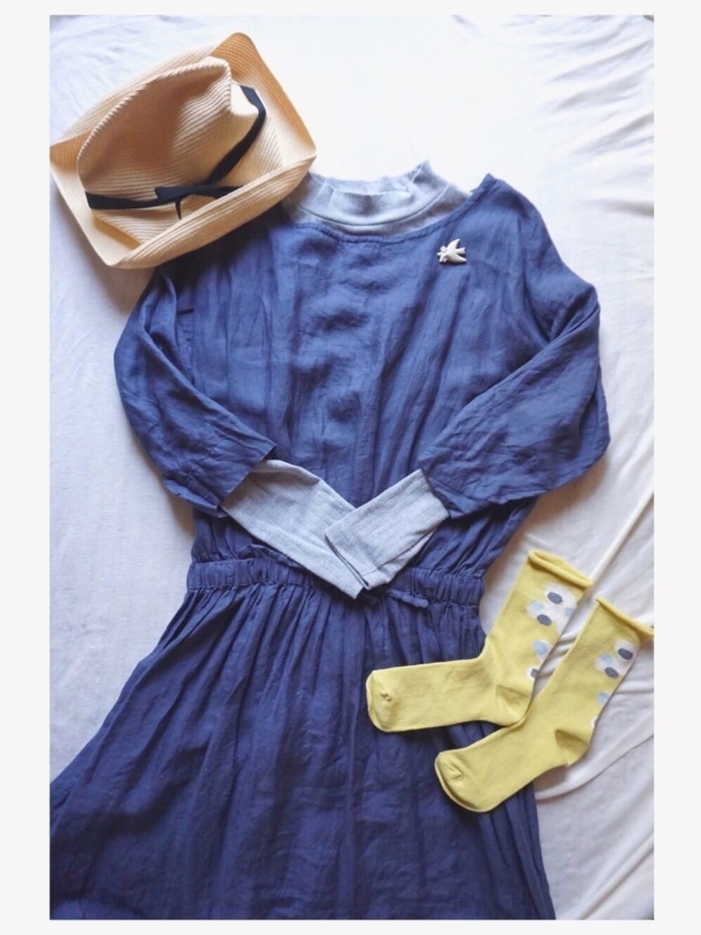 ぽっけ と びすけっとのワンピース「リネンウエストギャザークルーネックワンピース」を使ったコーディネート