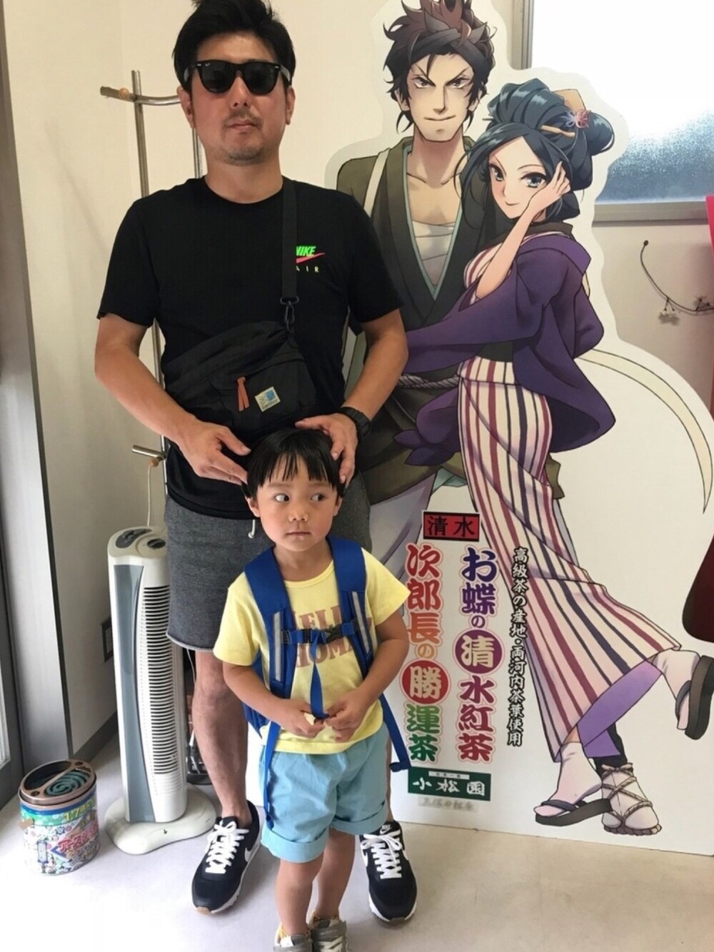 台風で不安定な天気ながら宝探しに清水へ。 愚息と2人で謎解きに奔走しておりました。 H&Mの切りっぱなしスウェットショーパン3本目。 コスパ良い、そしてこの色が何とも使いやすい。 夏の休日はイージーなパンツ以外本当に履く気がしないorz そしてエアマックス90ウルトラもオーソドックスな色遣いだけどとても良い👟 あ、隣に居るのは次郎長さんとお蝶さんです。