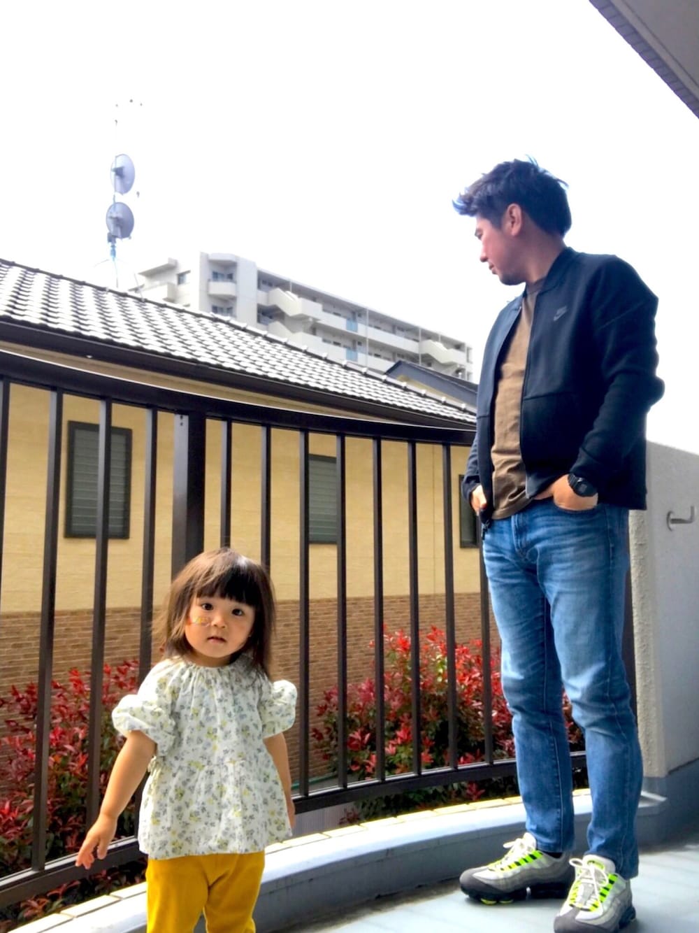 子供の面倒を見る為に午前休。 テックフリースバーシティジャケット × ユニクロユー クルーネックT × デニム × ヴェイパーマックス95 いつもの通りの足元に色を利かせて。 featuring長女にて。