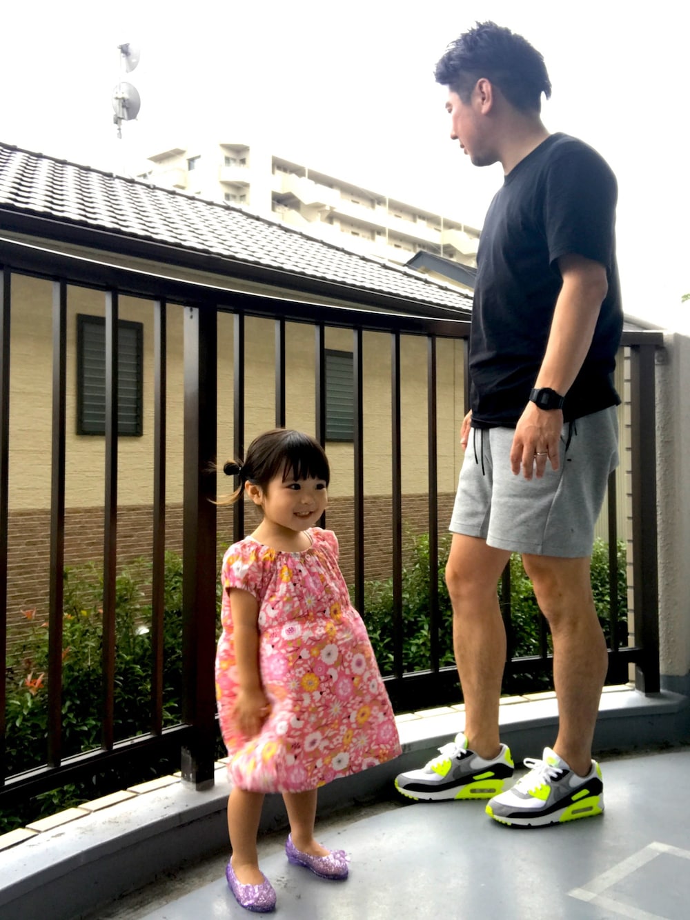 やっと4連休♪ 今日は長男坊の体育教室見学があったので自分も動き易い格好でw ユニクロユークルーネックT × テックフリースショートパンツ × エアマックス90 王道のブラック×グレーのハデス二。 この組み合わせが兎に角楽で。 長女のワンピがいい感じです♪