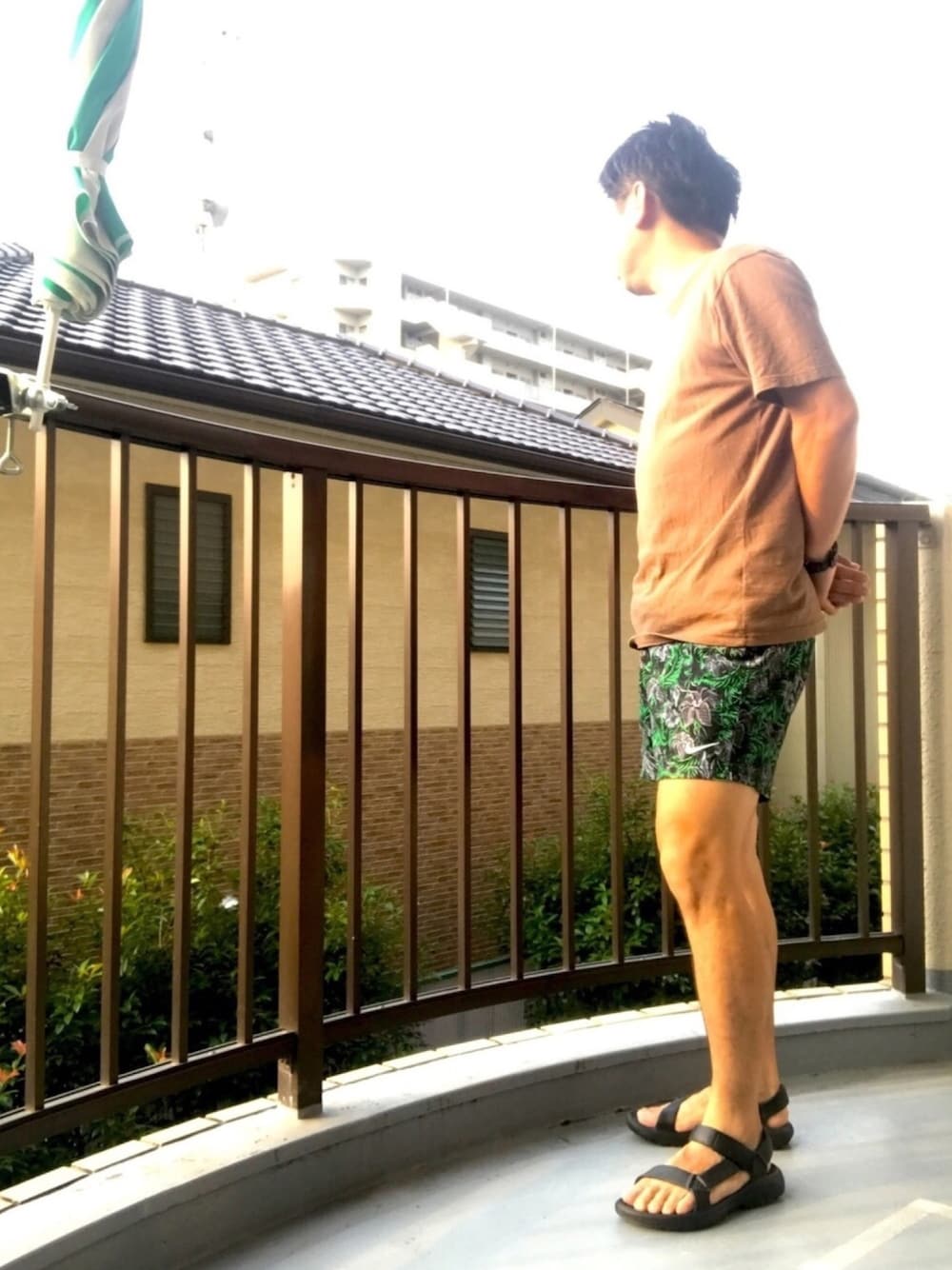 夏到来🌞 ユニクロユークルーネックT × フローラルショートパンツ × ハリケーンドリフト 子供との水遊びにはこの組み合わせが最高! テバサンの履き心地ジャスト感が堪らないのでどハマり中♡