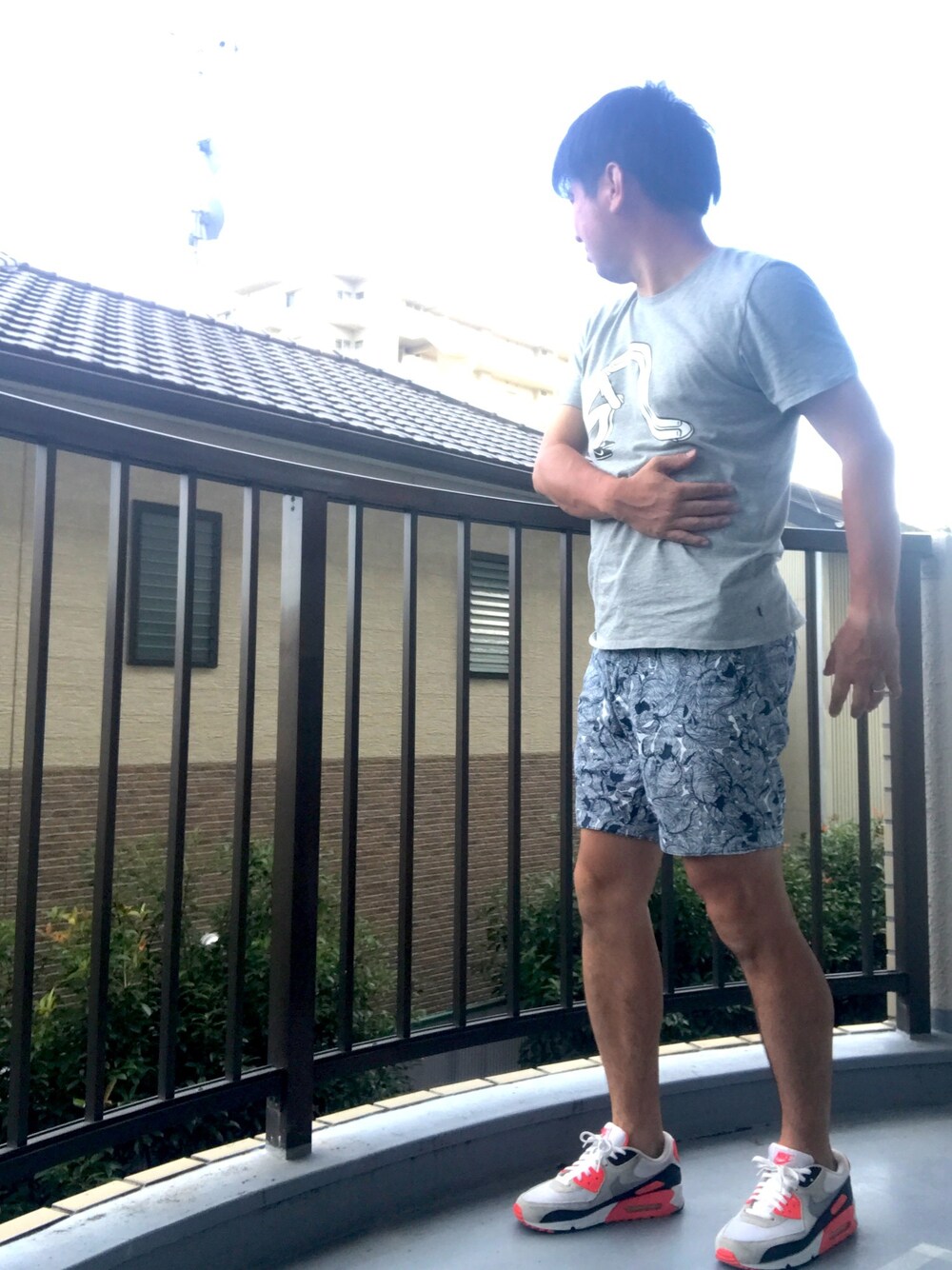 子供とガンガン遊んだのでシャワー浴びて着替えてサッパリ😁 という事でまさかの1日で2回目www NIKESBグラフィックT × ボタニカルショートパンツ × エアマックス90インフラレッド かわいいグラフィックだと子どもが喜ぶとの何のってw 主張の強くないグラフィックとボタニカル柄にインフラレッドを注ぐ、と。