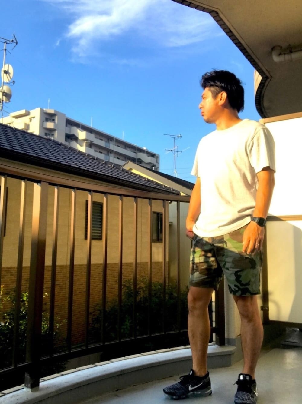 寝るのが早いせいか、起床が異常に早いw ユニクロユークルーネックT × カモフラージュショートパンツ × ヴェイパーマックスフライニット3 光で飛んじゃってますが Tシャツはグレーです。 ベタベタの組み合わせにおニューのヴェイパーマックスを。 独特な履き心地で見た目がカッコいい! キュッとしてるのが新鮮ですね。 AFと比べても同じ27.0と思う位のフィット感。 折角の連休、仕事を忘れて楽しもう!!