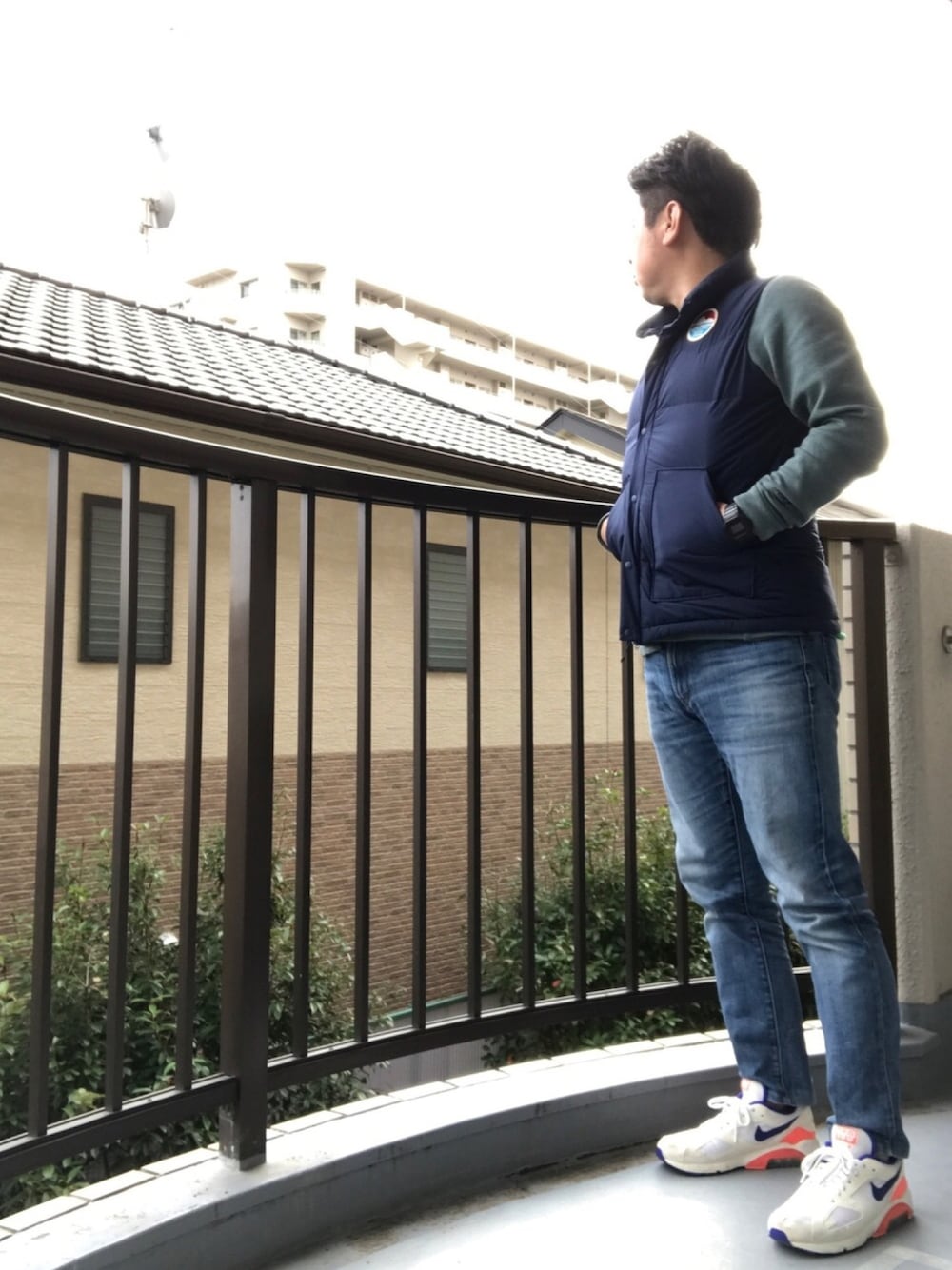 久々にデニム履いたの巻。 イーデイダウンベスト × テックフリースクルー × ジーンズ × ヴェイパーマックス3 このデニムも今や売られていないユニクロの名品。 最近ジョガーばっかり履いてたからなんか変な感じ。