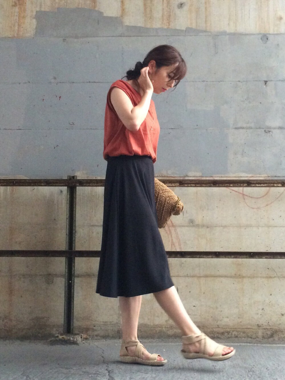 この時期は大好きなデニムが履けないのが難です…涙 今日はこれからBBQビアガーデンに行くので、汚れが目立たない色合いでまとめました。笑 流行とわかっていても、テラコッタをこの時期着るともう秋なのかしらと錯覚して少し寂しい気分になります…。夏休みがあるわけでもないのに、子供の頃の感覚が抜けません笑