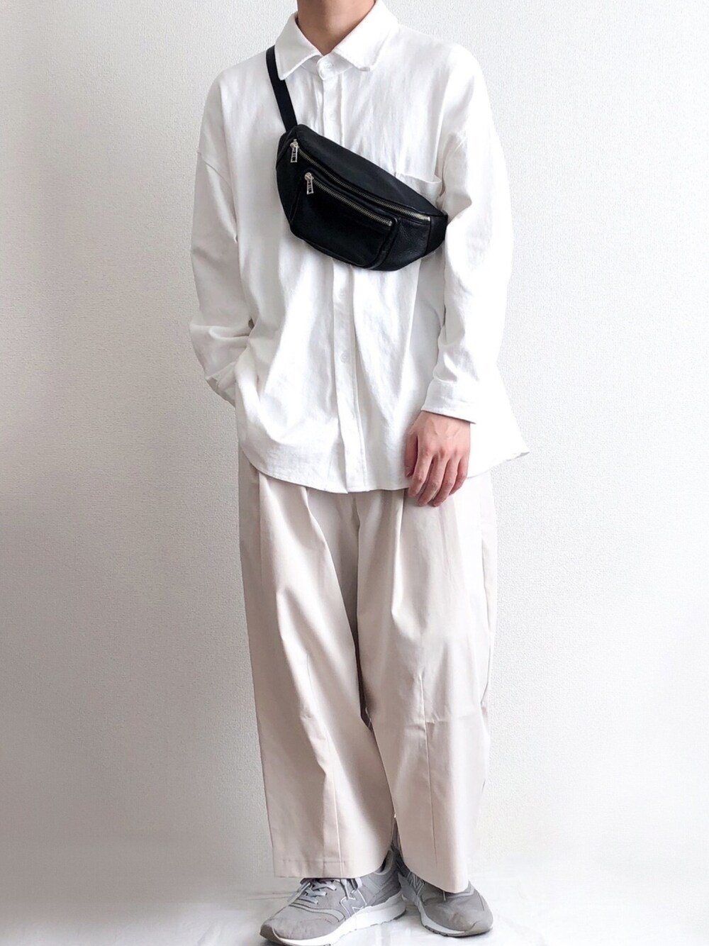 【ホワイトコーデ】 Niellのシャツはだいぶオーバーサイズなので、1枚で様になるシルエットが強みのアイテムです。 バッグで黒を入れてしめました。 よかったらいいね、お気に入り、フォローよろしくお願いします🙏
