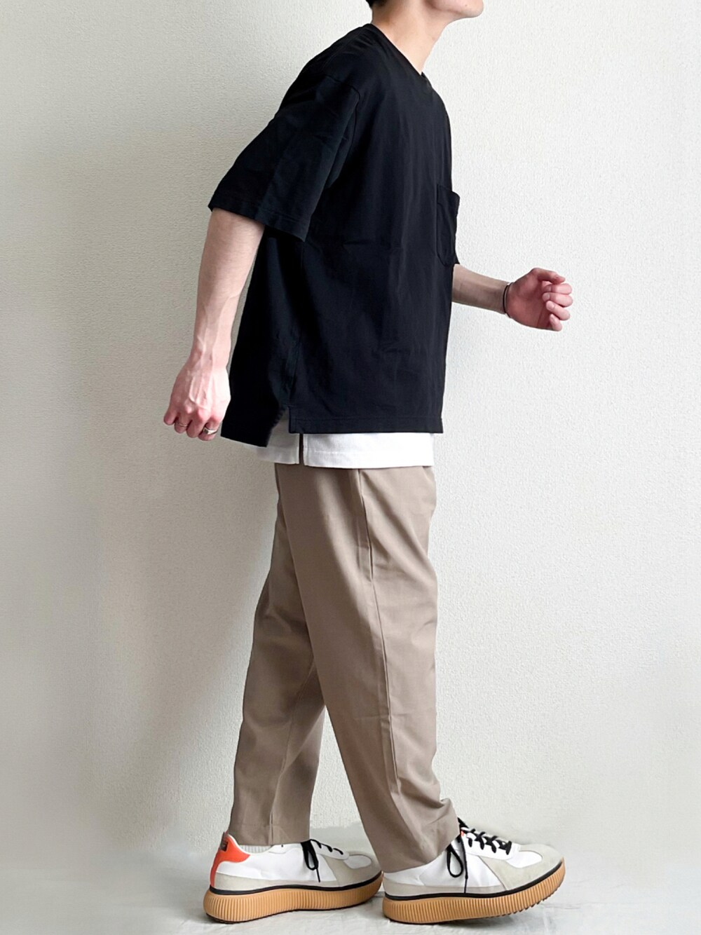 【リネンライク】 リネンライクパンツを使ったコーデ。 ︎︎︎︎☑︎アイテム -UNIQLOUのTシャツ -GLOBAL WORKのパンツ ︎︎︎︎☑︎ポイント リネン素材は夏に重宝します。涼しいから。 しかし必ずしもリネンでないと涼しくないという わけでもないので、今回はリネン風な素材感のパンツを使って コーデを組んでみました。 ポリエステル100%でも充分それっぽい風合いは出せちゃうので、 必ずしも天然素材にこだわる必要はないのかも。 ---------------------------------------- 見て下さりありがとうございます☺️ 低身長メンズのコーデを投稿してます。 参考になればいいね、お気に入り、フォローなどしてもらえると嬉しいです。 Instagram → @saku_da.yo
