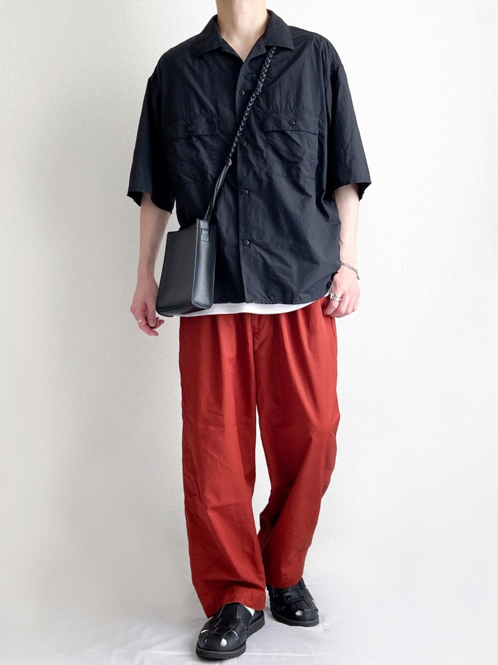 【個性コーデ】 オレンジパンツを使ったコーデ。 ︎︎︎︎☑︎アイテム -GLOBAL WORKのシャツ -UNIQLOUのパンツ ︎︎︎︎☑︎ポイント ブラック×ダークオレンジ。 個性がある色合わせで、ダークオレンジがアクセントになります。 シャツはオーバーなものを使っているのでゆったりした シルエットになります。 パンツも太めのシルエットなので、全体としてゆるい雰囲気に なります。 ---------------------------------------- 見て下さりありがとうございます☺️ 低身長メンズのコーデを投稿してます。 参考になればいいね、お気に入り、フォローなどしてもらえると嬉しいです。 Instagram → @saku_da.yo