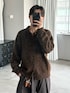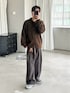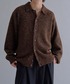ブラウンのメランジニットシャツを使った暖色コーデ。