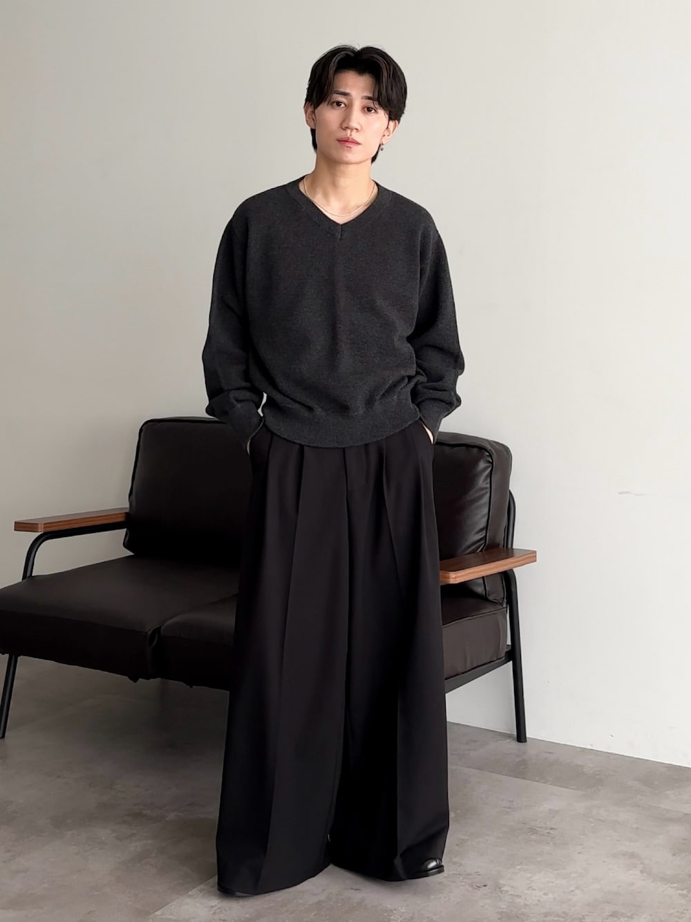 sakuのニット/セーター「メランジVネックルーズニット」を使ったコーディネート