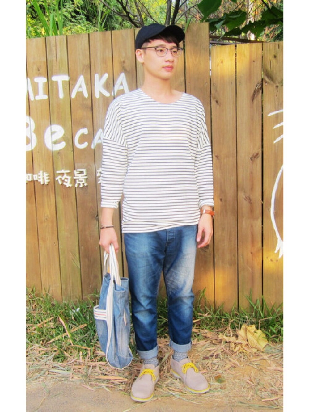 天氣真的說變就變~ 昨天還超熱!今天就變涼! 這套主軸是細黑橫條紋白T, 不同角度的細黑橫條~ 加上寬鬆的剪裁,很舒適, 且有重點,也喜歡袖口漸漸收緊, 向上折個兩折會很俐落~ 搭配刷白的單寧褲,灰白的麂皮短靴, 與單寧托特包,創造舒適的休閒感~