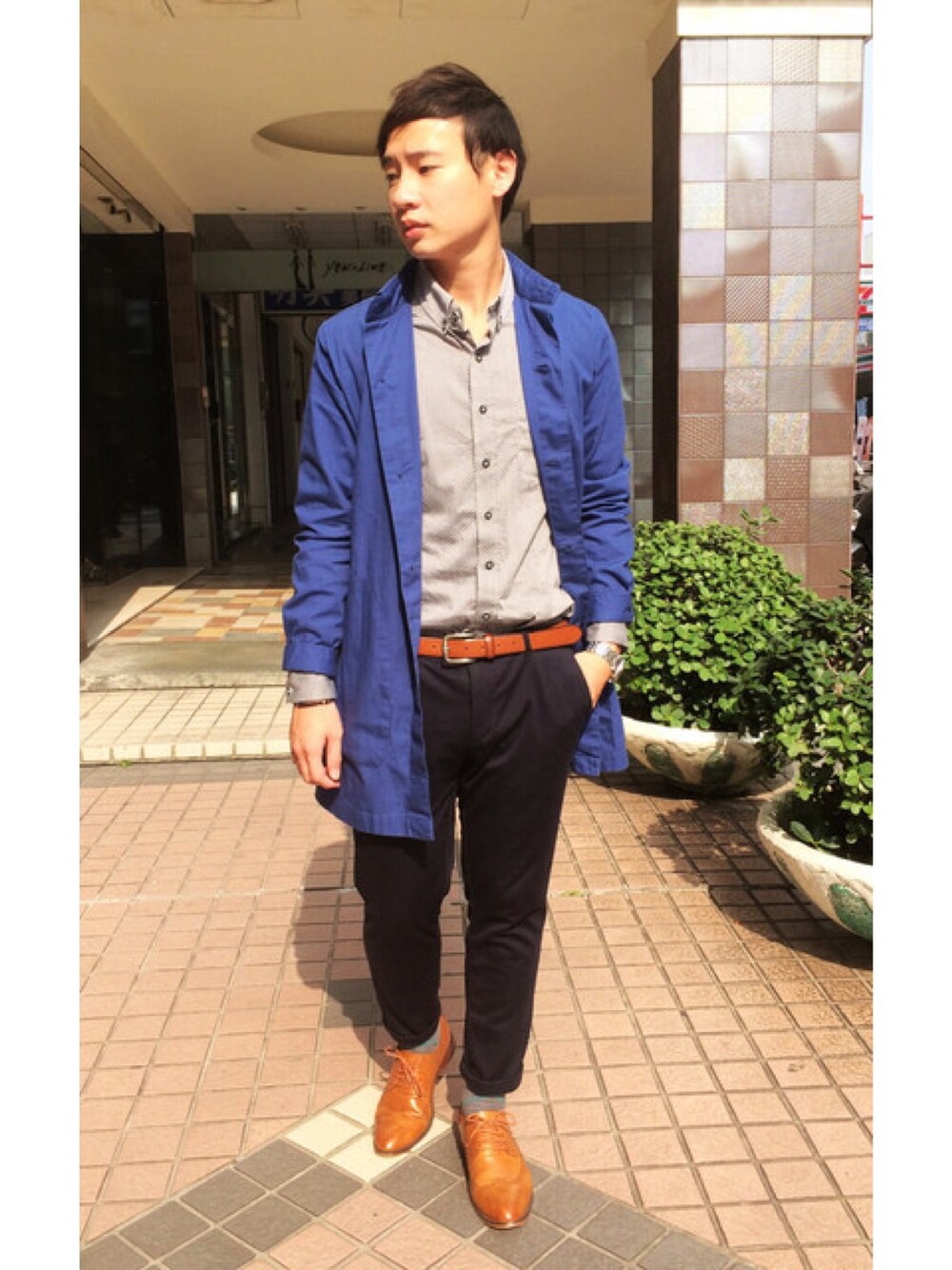 西褲 寶藍色SHOP COAT 配上同樣色系的 褐色雕花皮鞋以及皮帶 將銀灰色點點襯衫 紮進西褲~ 輕微正裝感的休閒 我很愛這種阿~^^ 穿搭是每天生活的品味展現~ LOVE DAPPEI~