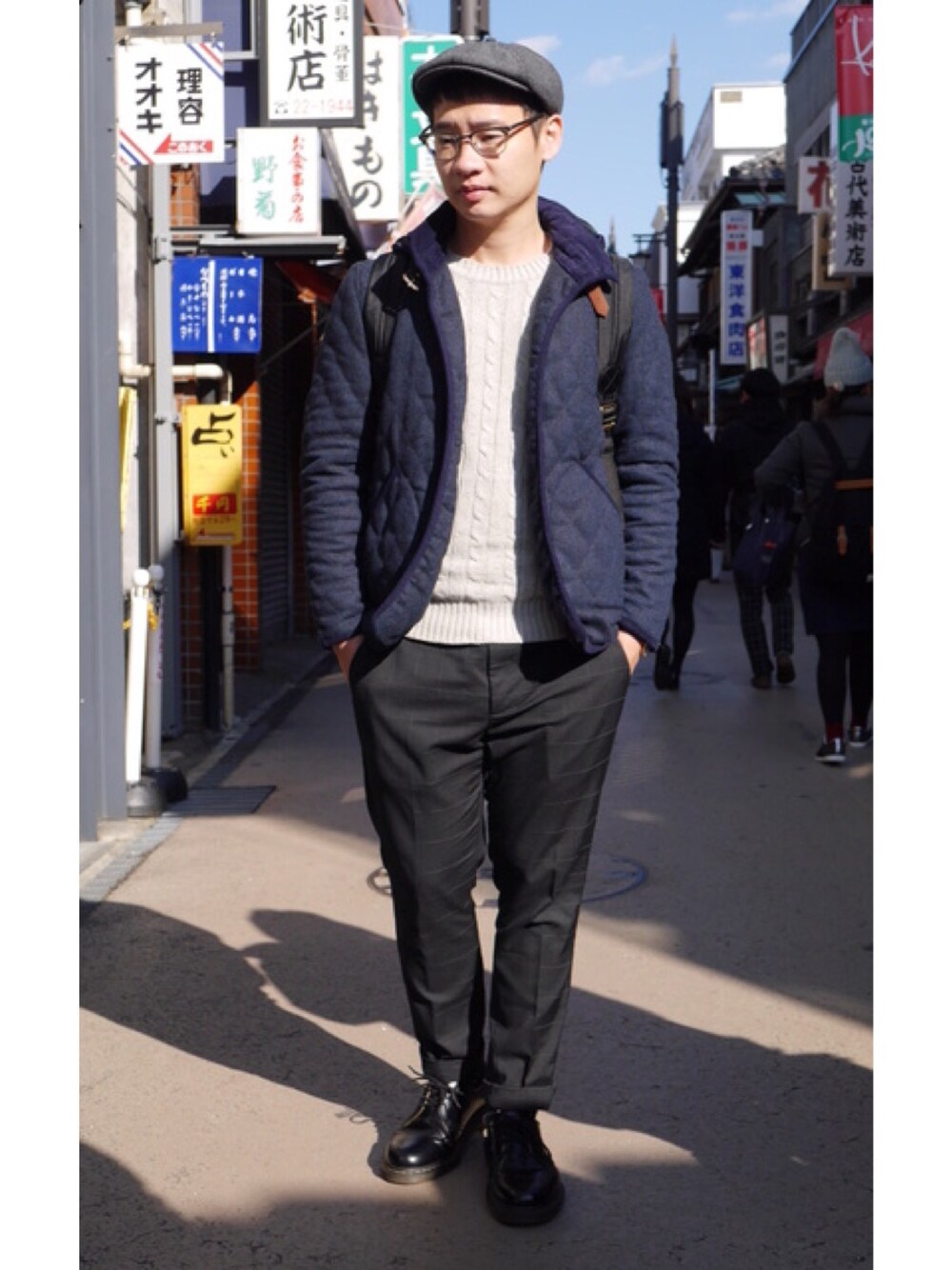 這是之前去東京玩的穿搭~ 外套是在當地買的~ 很早之前就想要嘗試這種菱格縫法的外套~ 藍色內搭灰色粗針織~ 喜歡這種配色!再以報童帽完成整體造型~