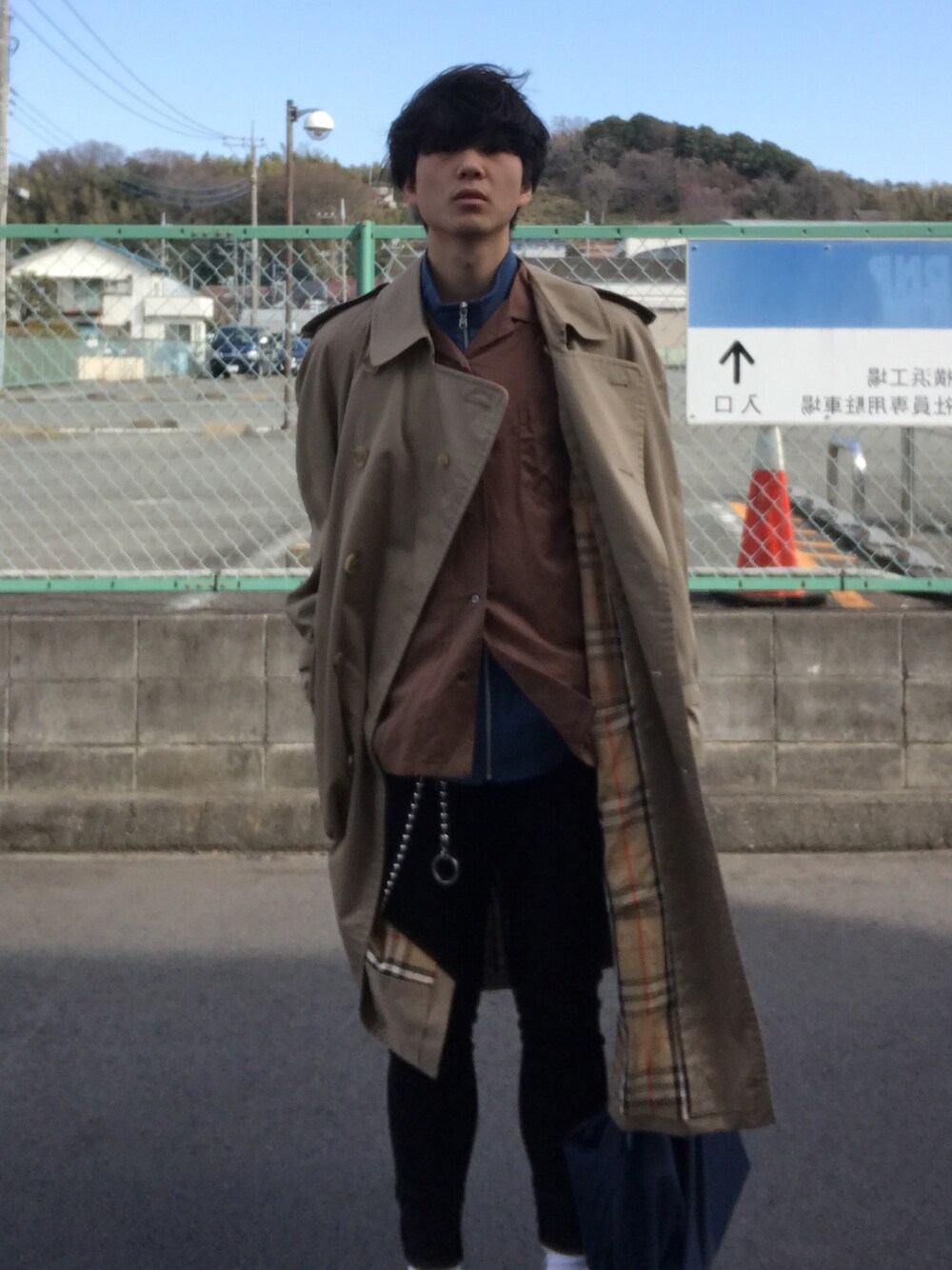 シルバー系のウォレットチェーンを着用したメンズの春コーディネートの1枚目の写真