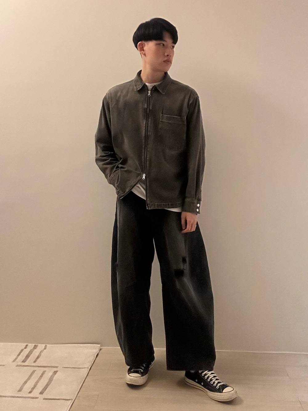 Ting Yuのシャツ/ブラウス「【UNISEX】 overdyed denim loose shirt/選べる着丈/Wジップオーバーダイ加工デニムルーズシャツ」を使ったコーディネート