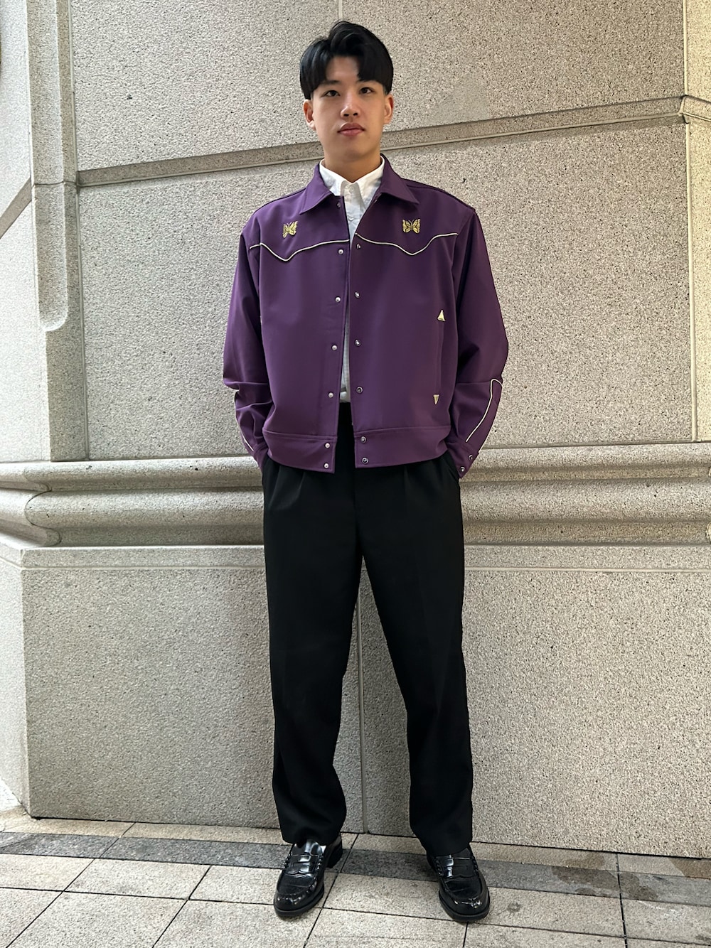 NeedlesFREAK'S STORE¥4,994UNIQLOHARUTA¥8,030この画像から似たアイテムを検索できます266お気に入り (1)60Ting YuさんへのコメントNO COMMENTコメントはスマートフォン用アプリからご利用できます着用アイテムNeedlesNeedlesジャケット/アウター (パープル系)ジャケット/アウター探すZOZOTOWNで探す¥4,994FREAK'S STOREFREAK'S STOREシャツ/ブラウス (ホワイト系)シャツ/ブラウスサイズ:LARGE着用コーデ:3件商品を見るZOZOTOWNで購入するUNIQLOUNIQLOタックワイドテーパードパンツパンツ (ブラック系)パンツ探すZOZOTOWNで探す¥8,030HARUTAHARUTAローファー (ブラック系)ローファーサイズ:28.0cm着用コーデ:2153件探すZOZOTOWNで探すTing Yuのジャケット/アウターを使ったコーディネートコメントを表示2026.3.15着用ブランドNeedlesFREAK'S STOREUNIQLOHARUTAタグ#春コーデ#きれいめカジュアル#休日コーデ#シンプルスタイル#スウェットパンツ#ジャケットスタイル#お出かけコーデ#NEEDLES#HARUTA#ローファーモデル情報男性・180cm似ているアイテムNeedles × ジャケット/アウターFREAK'S STORE × シャツ/ブラウスUNIQLO × パンツHARUTA × ローファーTing Yu@timlin419 / 180cm / MEN0コーディネート0フォロワー注目のコーディネートアプリでもっと見るもっと見る