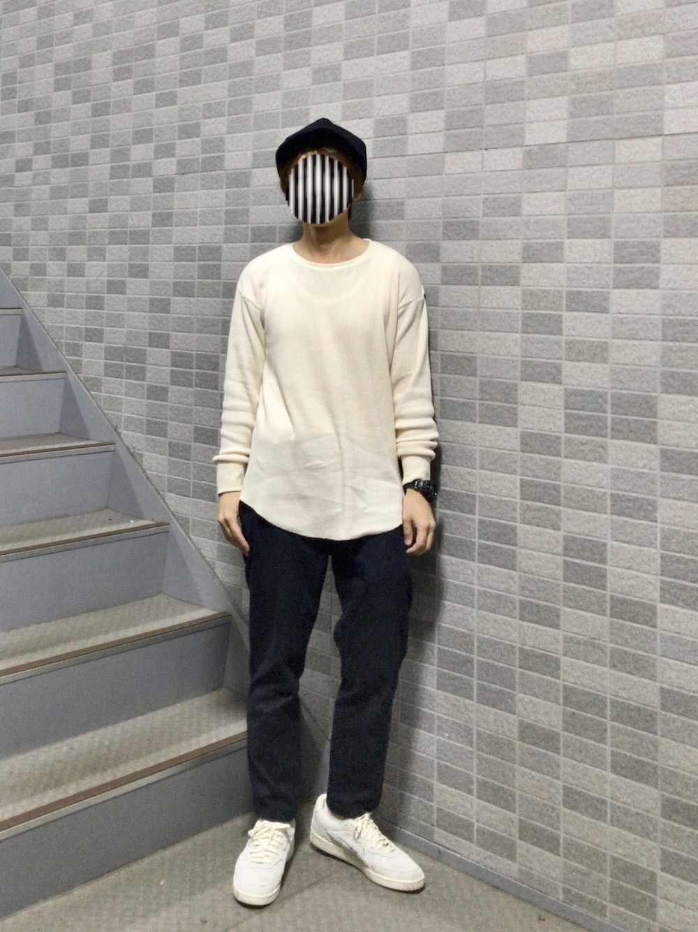 ちょっとゆるめのトップスで ほんのりベージュで使いやすいかなと思います スニーカーも同じような色で統一感がだせたかな…