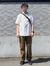シンプルなコーディネートにしてみました UTのTシャツはラグランスリーブでほんのりくすんだ色味で1枚でも良いアクセントになってくれます ワイドチノも着やすくていいです👍
