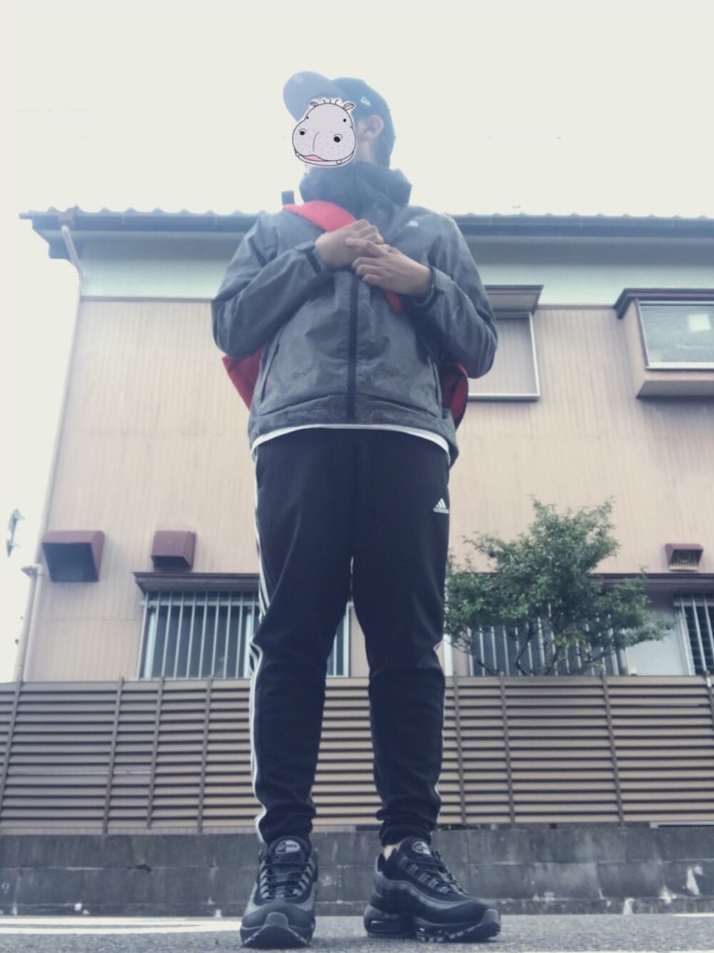 皆さまオツカバよん。 夕方から買い出しカバオ。 昨日までナイキのオンラインサイトが25%オフセールだったから 前から欲しかった、エアマックス95 をポチっちゃった私(´◕◞౪◟◕。)).... 今日届いたので早速履いてみましたわよ。 黒とグレーの配色がcoolですわよ。 靴に合わせて全体的に暗めの色の服装にしたので 赤いメッセンジャーバックを背負ってみましたわよ。 このバッグは古着屋で買ったんだけど、イギリス郵便局員が実際使用してるバッグでデカくておきにですの(´◕◞౪◟◕。)).... 今日のカバの服装のテーマは 「都会に潜むウーバーイーツ配達員」 ですわよ(´◕◞౪◟◕。))....